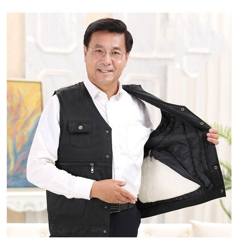모피 원피스 조끼 남성용 울 웨이슬 중년 및 노인 양가죽 조끼 아빠의 따뜻한 기모 두꺼운 조끼스토어 가기