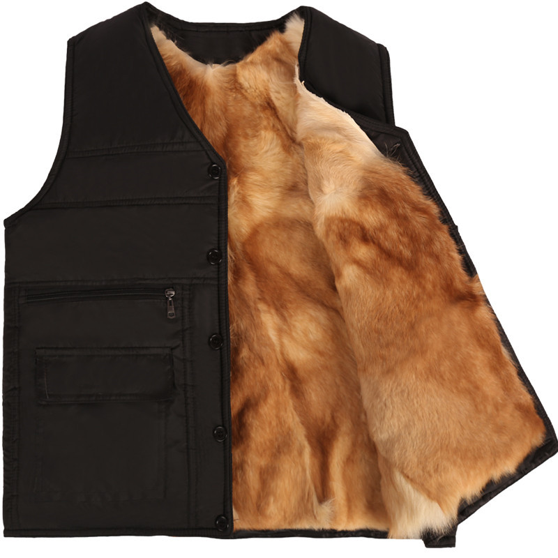 모피 원피스 조끼 남성용 울 웨이슬 중년 및 노인 양가죽 조끼 아빠의 따뜻한 기모 두꺼운 조끼