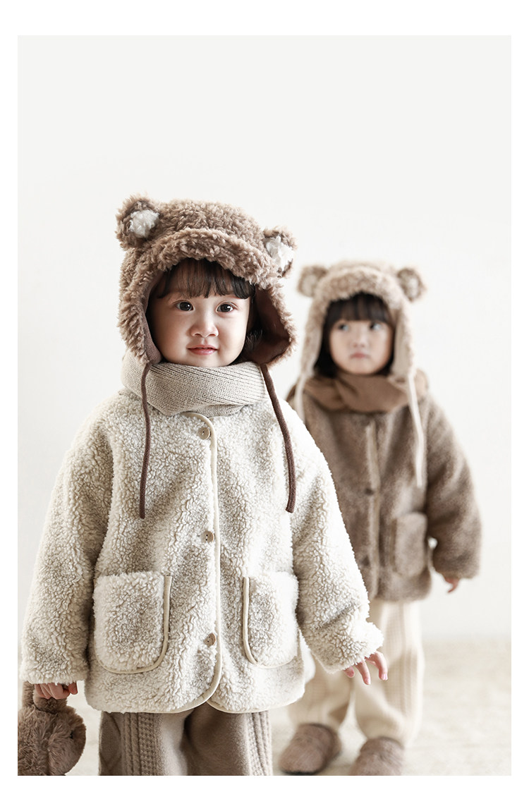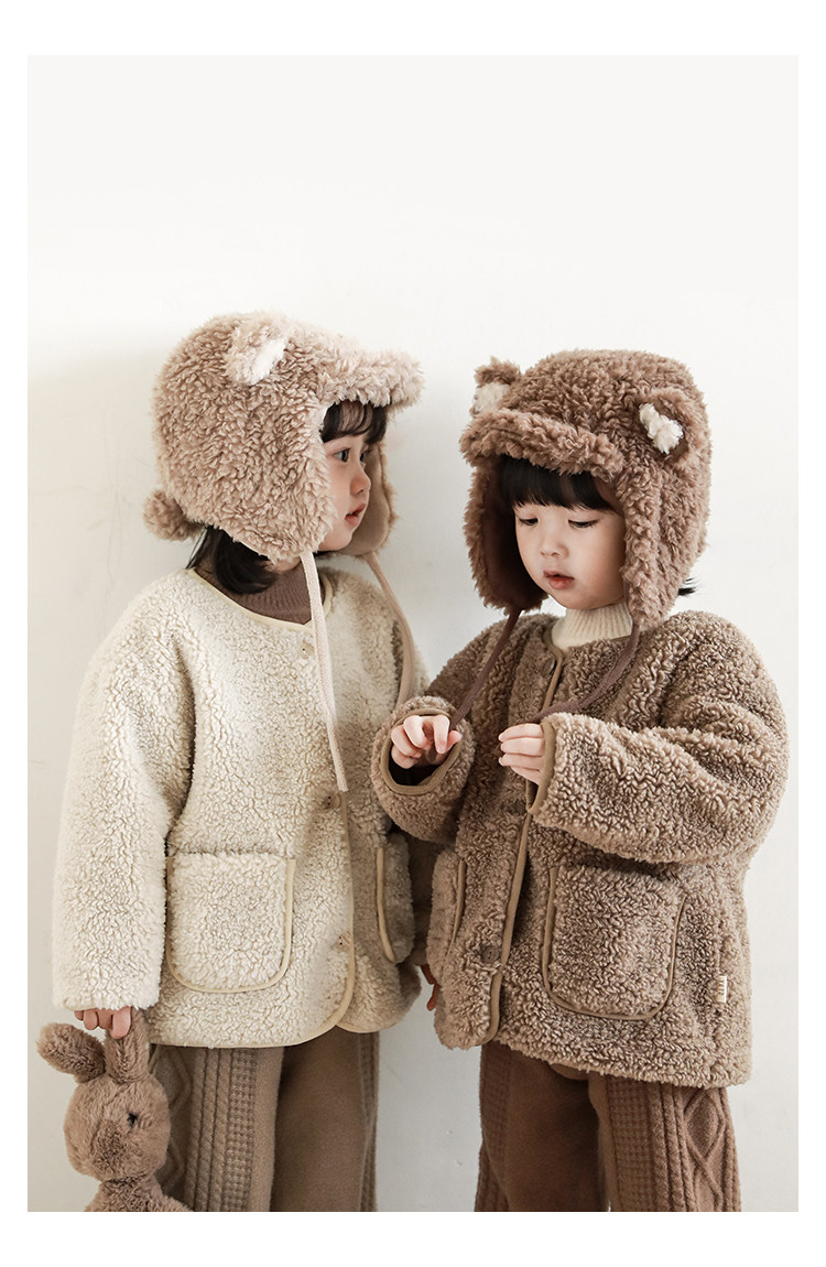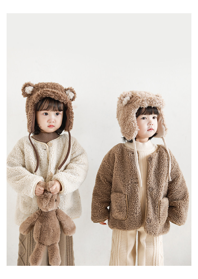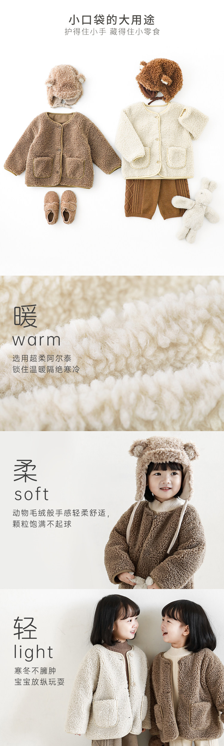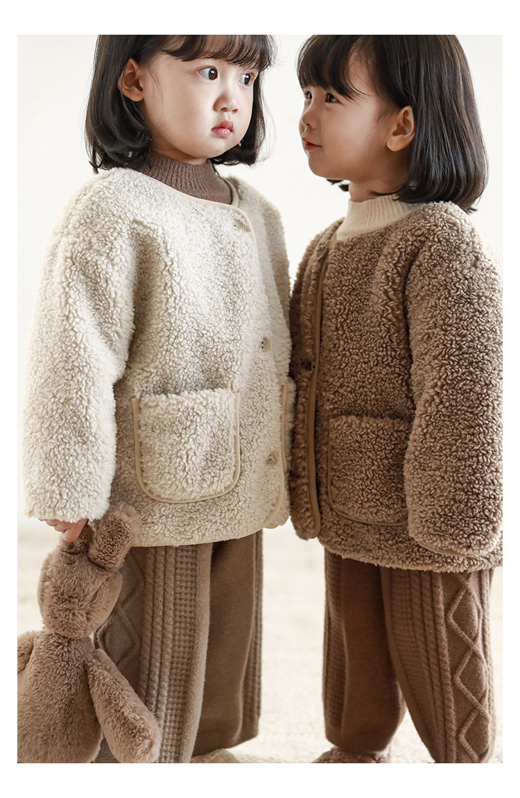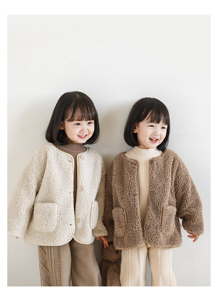 우리부이 어린이 복고풍 따뜻한 플리스 재킷 2025 겨울 신상 여자 아기 심플 플리스 외투스토어 가기