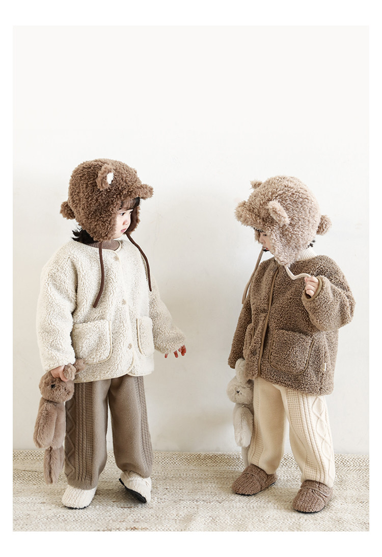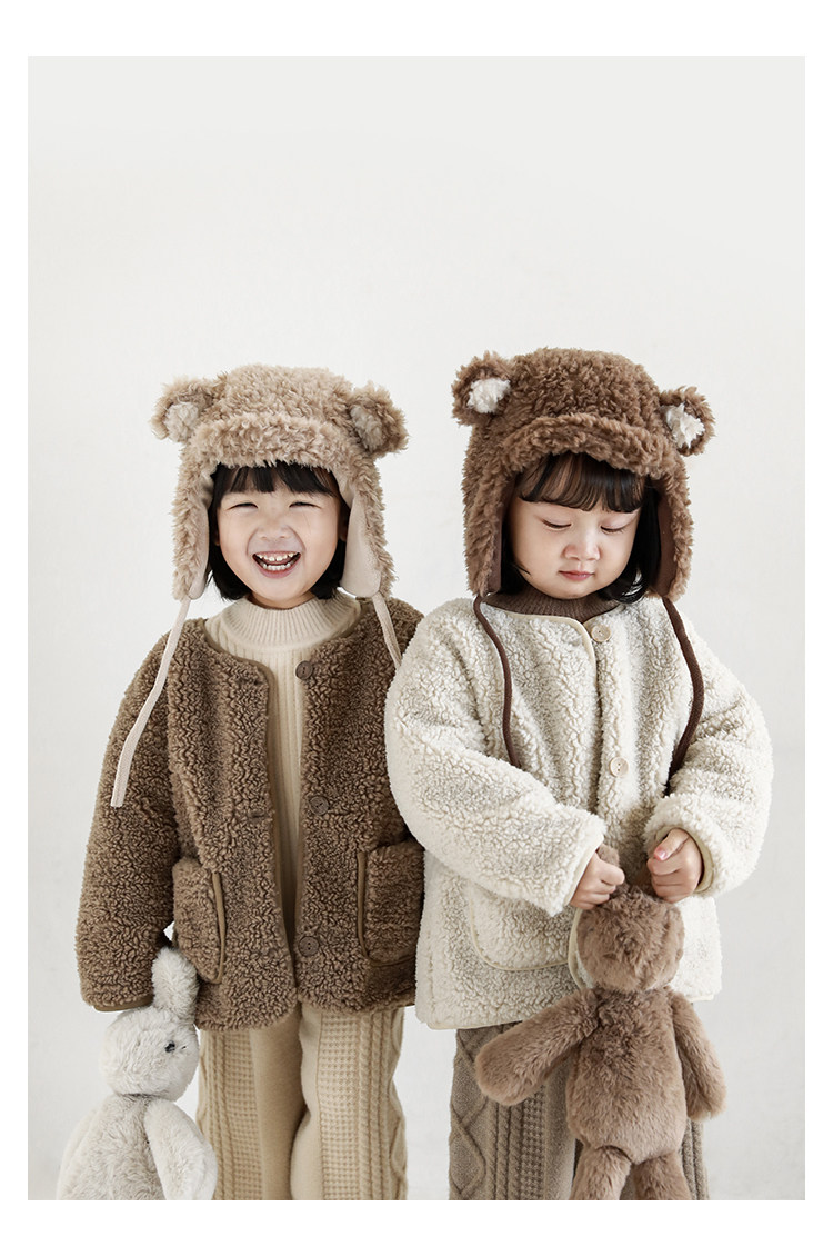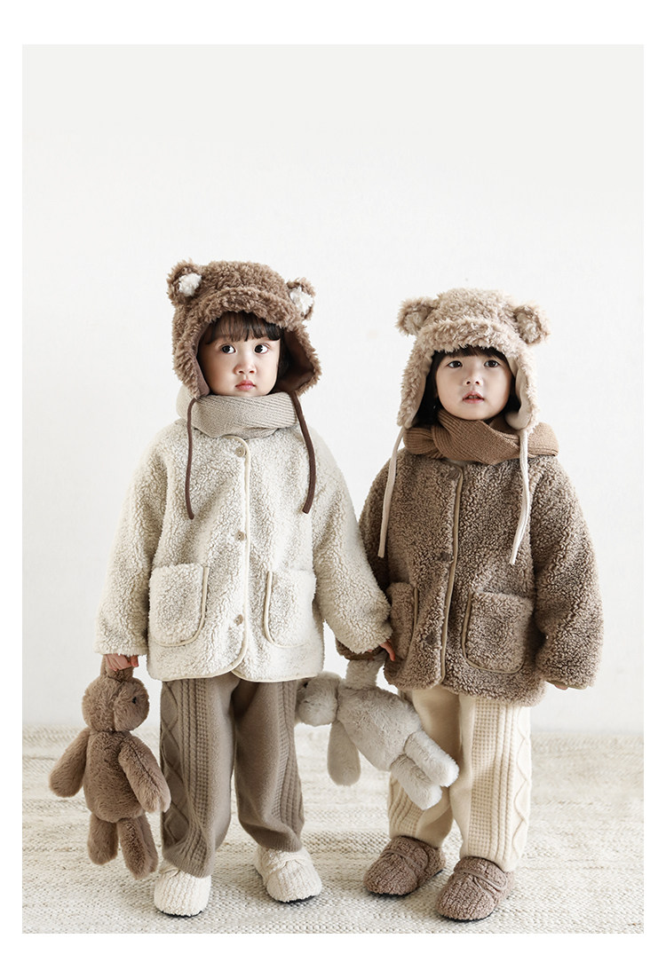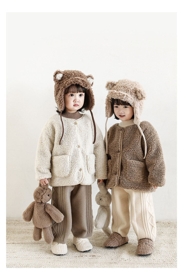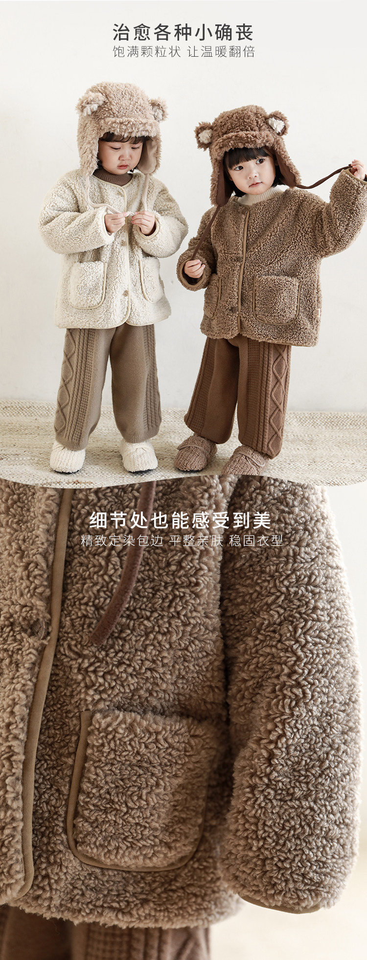 우리부이 어린이 복고풍 따뜻한 플리스 재킷 2025 겨울 신상 여자 아기 심플 플리스 외투스토어 가기
