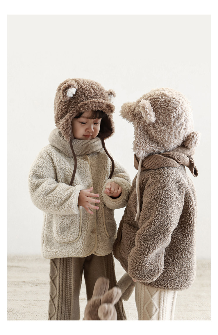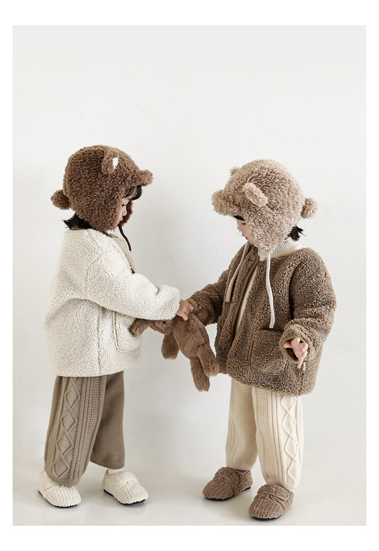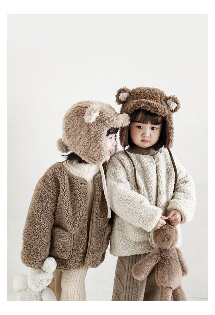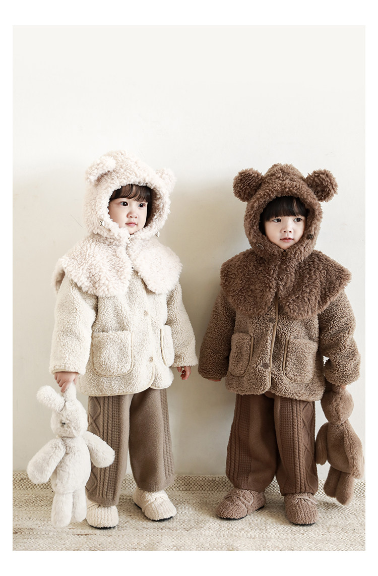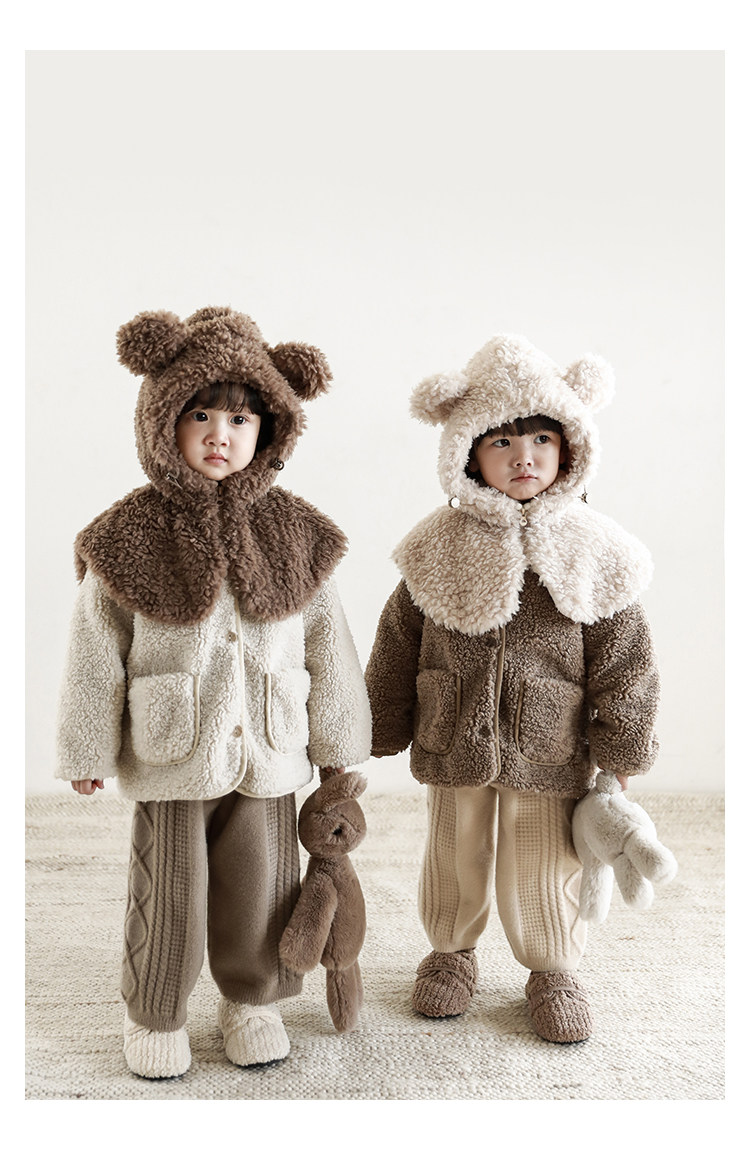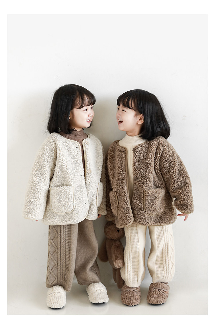 우리부이 어린이 복고풍 따뜻한 플리스 재킷 2025 겨울 신상 여자 아기 심플 플리스 외투스토어 가기