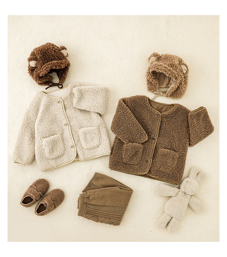 우리부이 어린이 복고풍 따뜻한 플리스 재킷 2025 겨울 신상 여자 아기 심플 플리스 외투