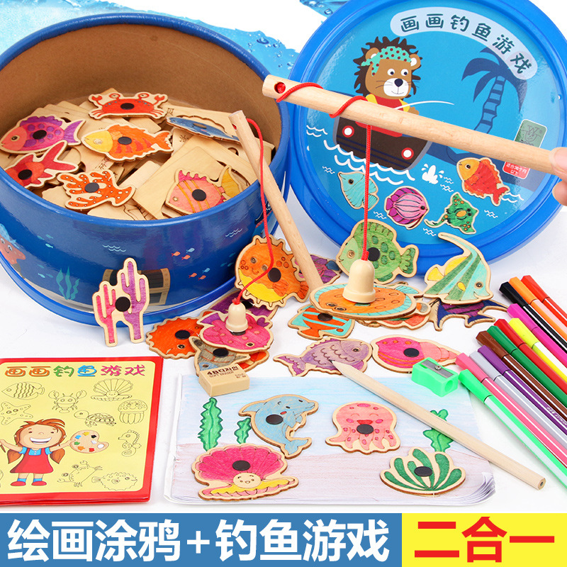 그림 낙서 낚시 장난감 마그네틱 나무 바다 낚시 게임 아기 아기 유아 어린이 직소 퍼즐 버킷 빌딩 블록스토어 가기