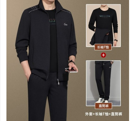 중년 및 노인 스포츠 세트 남자의 플러스 사이즈 새로운 스타일 아빠 가을 3 종 세트 중년 남성 스포츠웨어 재킷