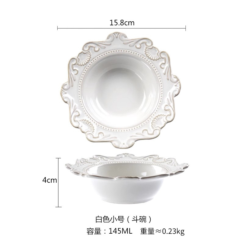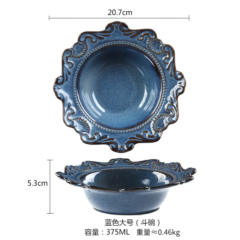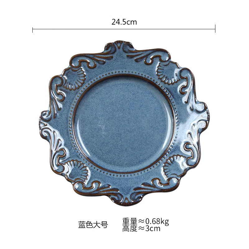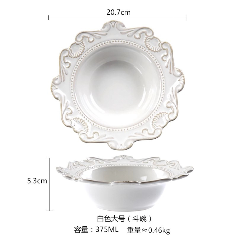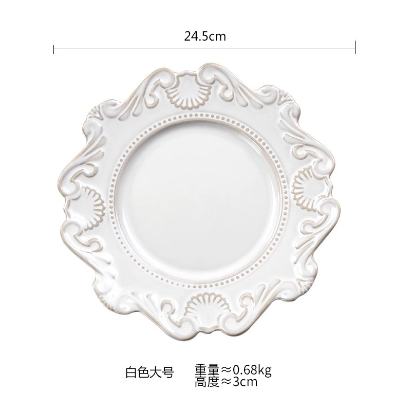 유럽식 릴리프 플레이트 가정용 양식 접시 수프 그릇 밥그릇 창조적 인 플랫 플레이트 식기 접시 세라믹 식기