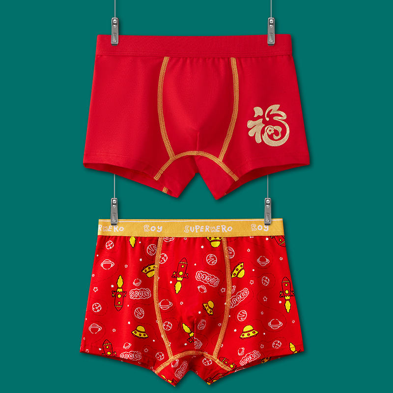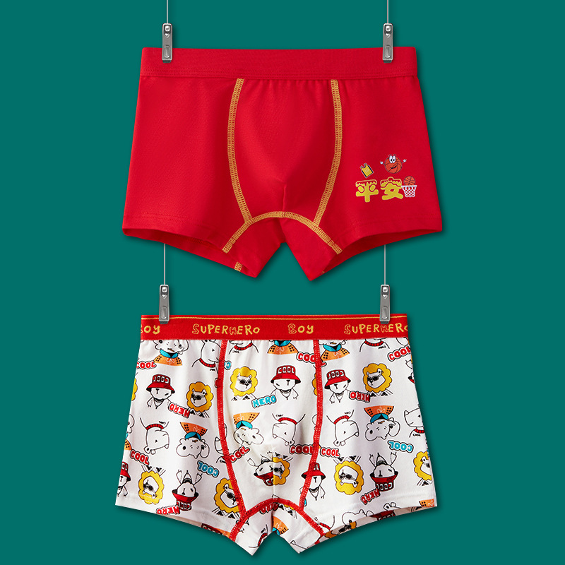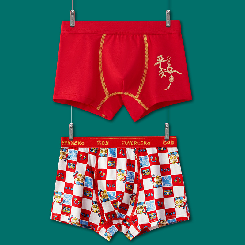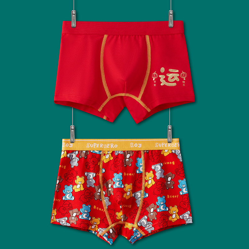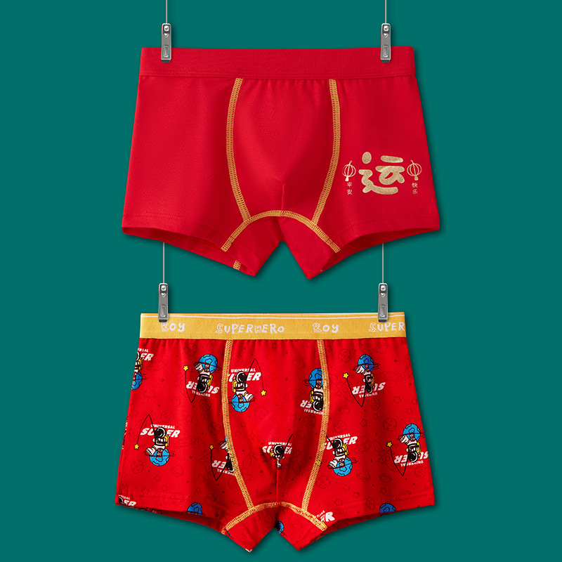어린이 속옷 소년 빨간 속옷 4 코너 미세셔틀면 PP 어린이 중 · 대형 어린이 꼬마 복서 미끄러지지 않음스토어 가기