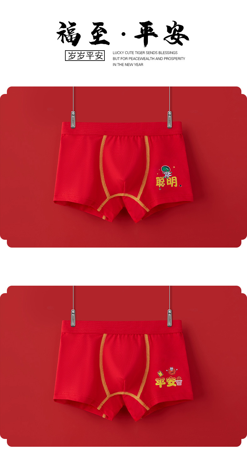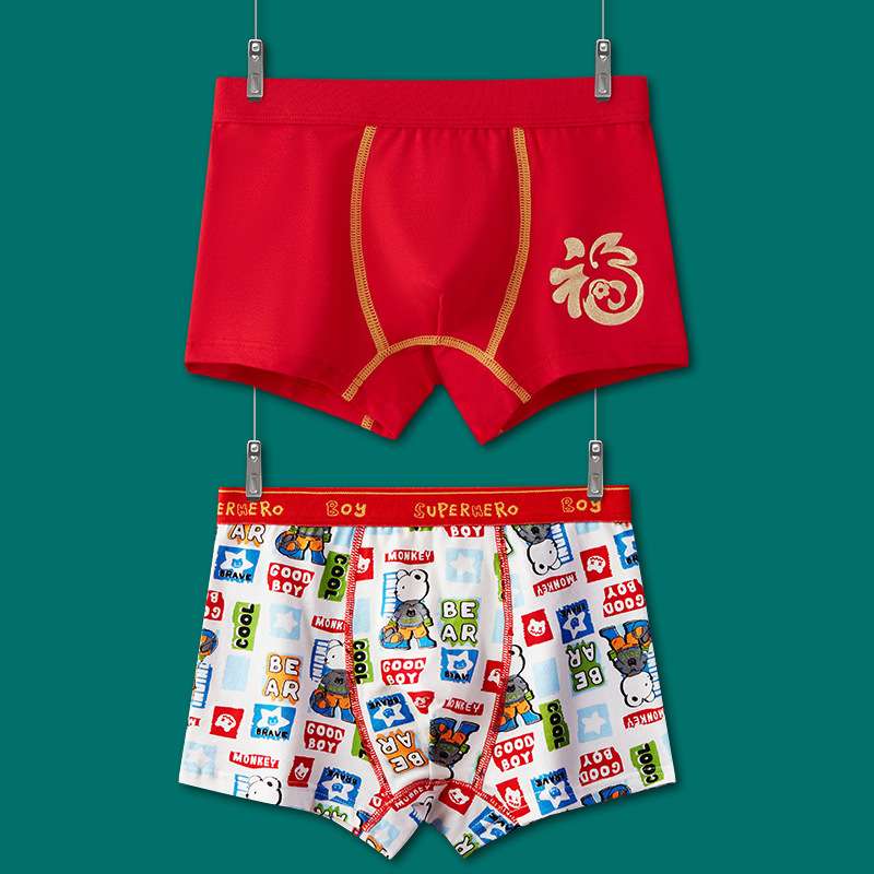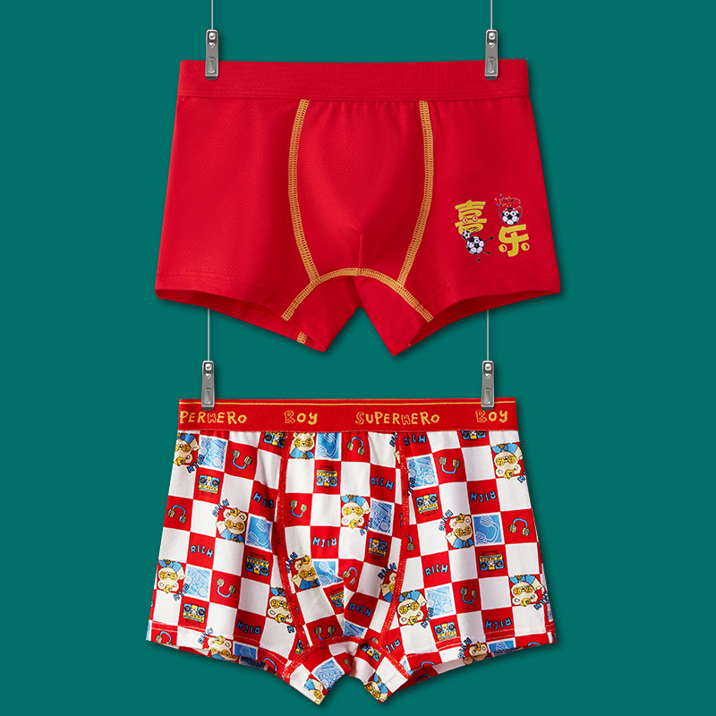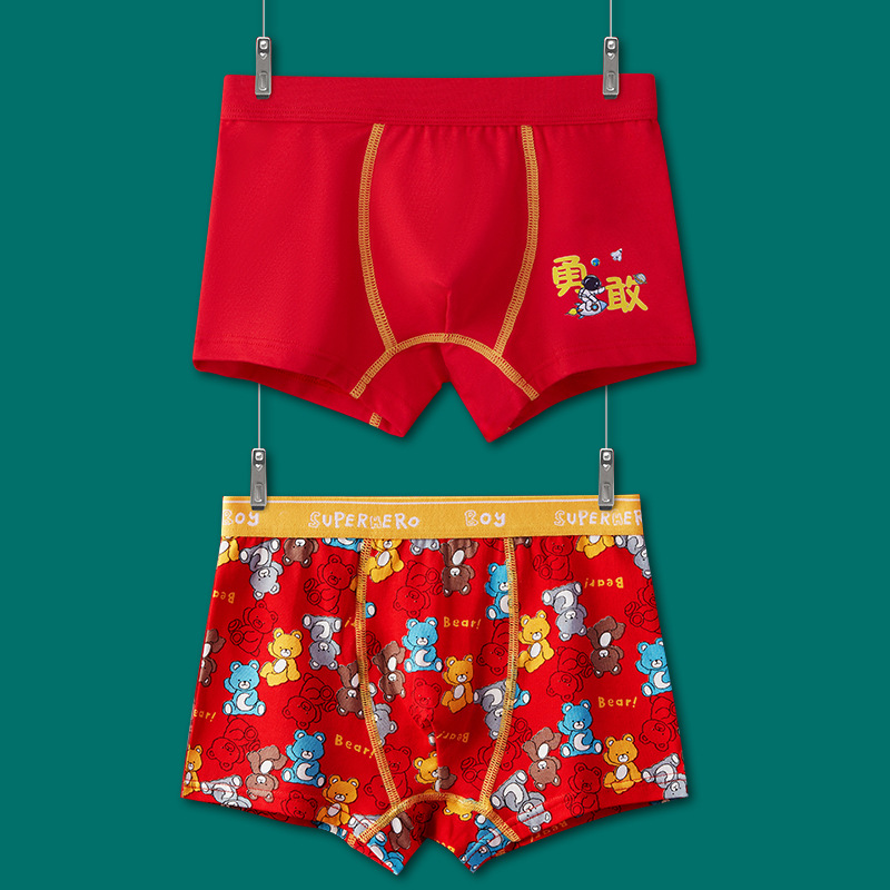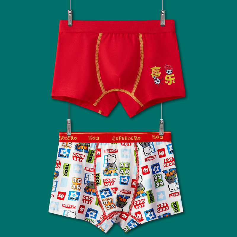 어린이 속옷 소년 빨간 속옷 4 코너 미세셔틀면 PP 어린이 중 · 대형 어린이 꼬마 복서 미끄러지지 않음스토어 가기