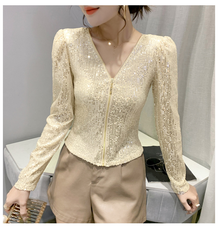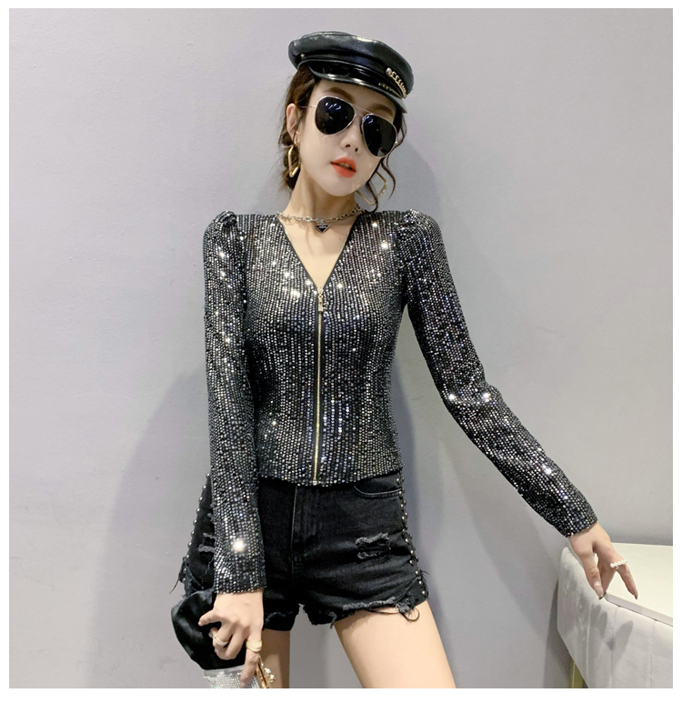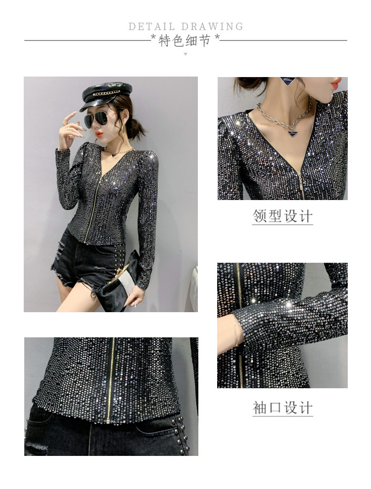 유럽 역 실제 촬영 2023 가을과 겨울 클래식 스팽글 긴소매 지퍼 카디건 여성 탑 스팽글 코트 원피스 배달