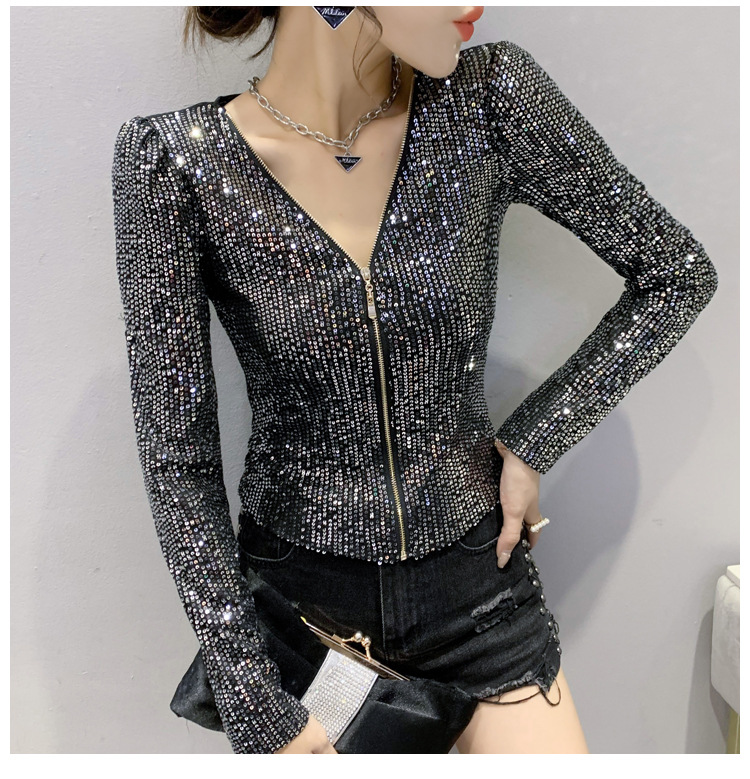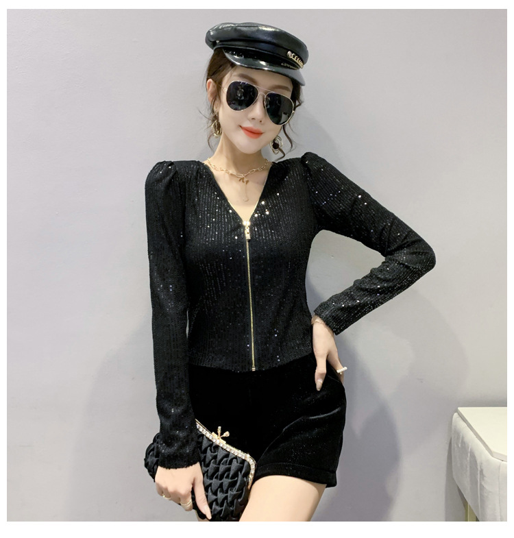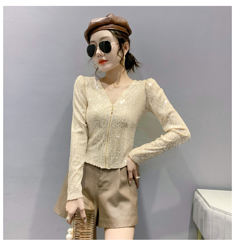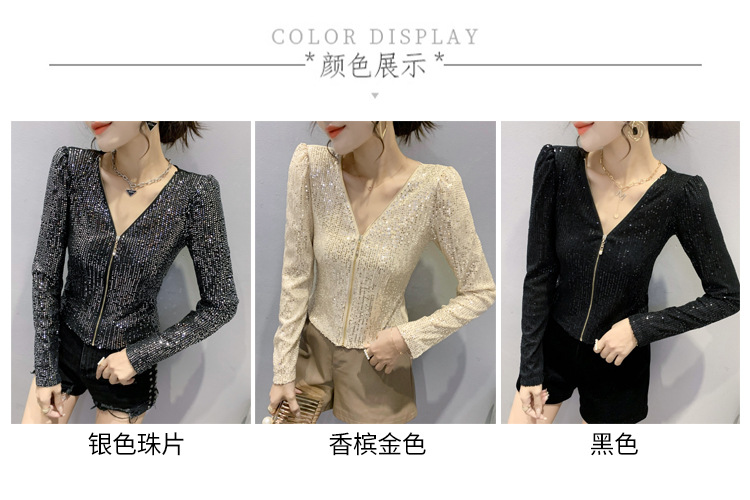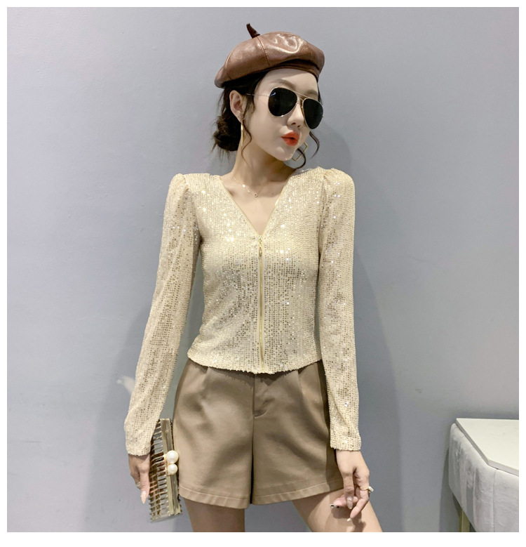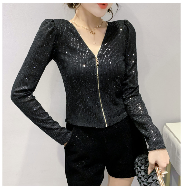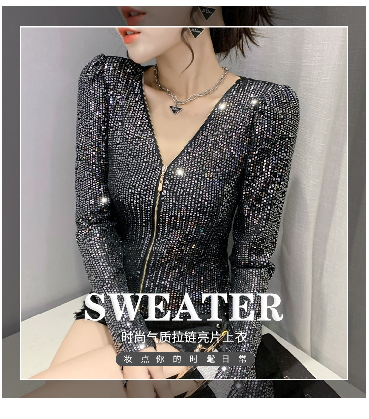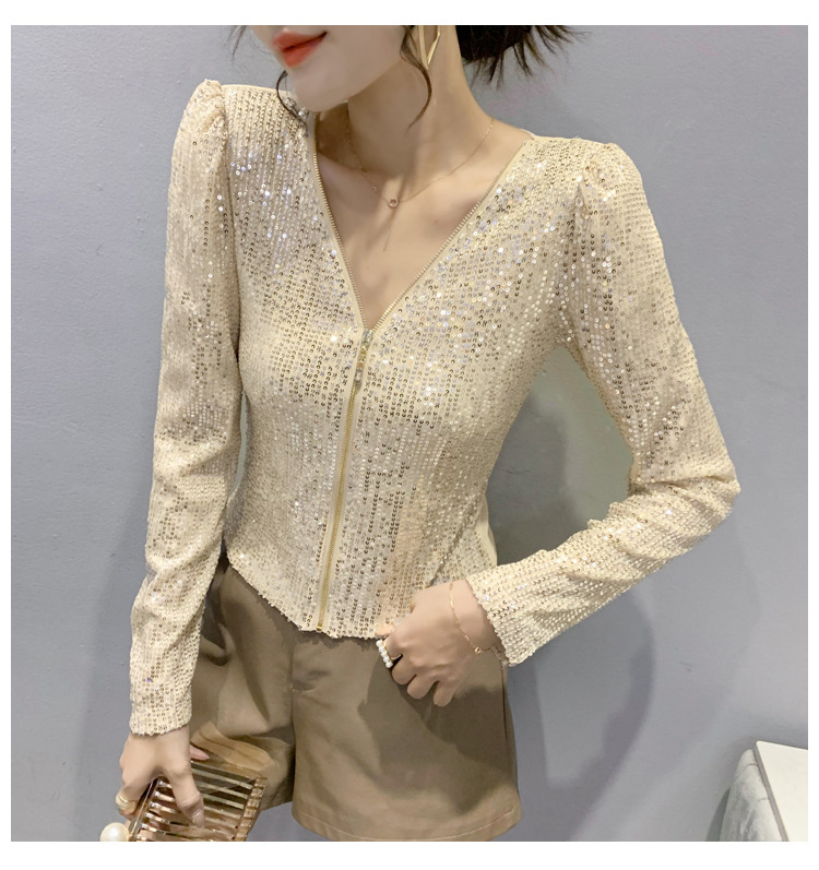유럽 역 실제 촬영 2023 가을과 겨울 클래식 스팽글 긴소매 지퍼 카디건 여성 탑 스팽글 코트 원피스 배달스토어 가기