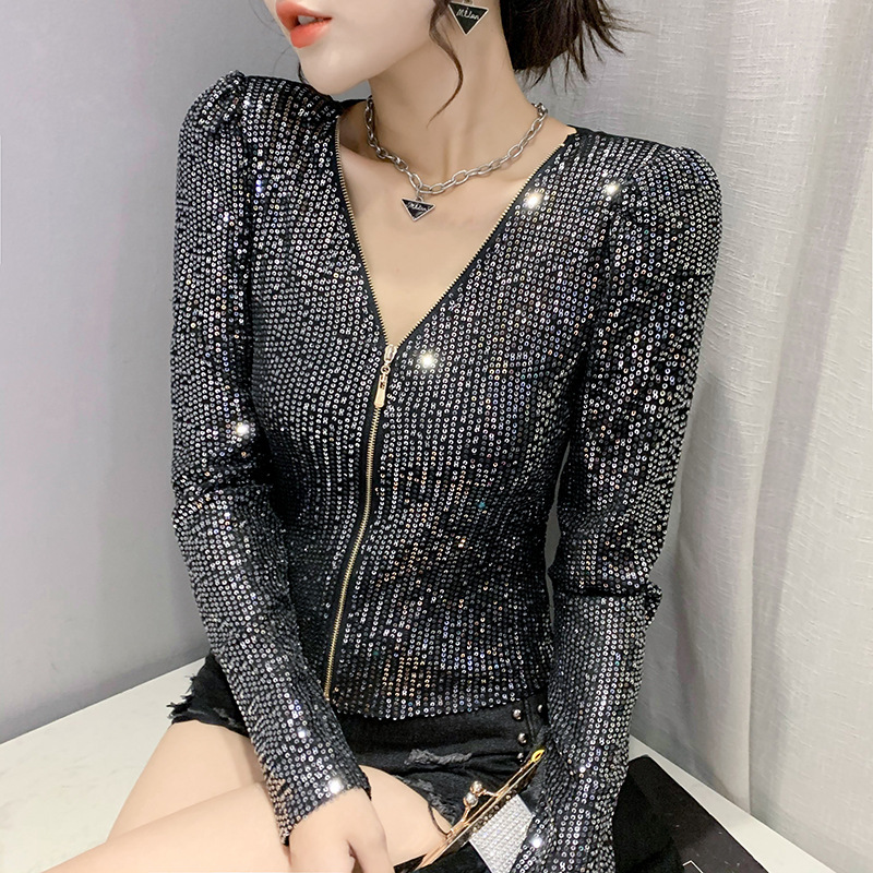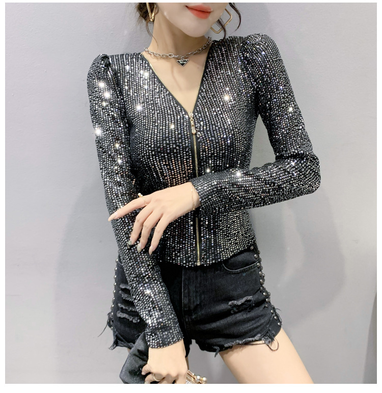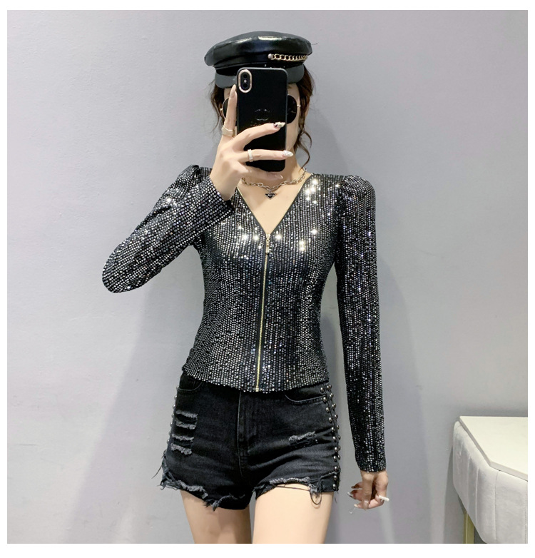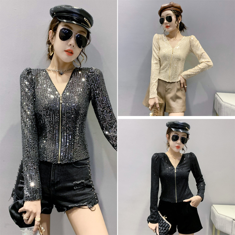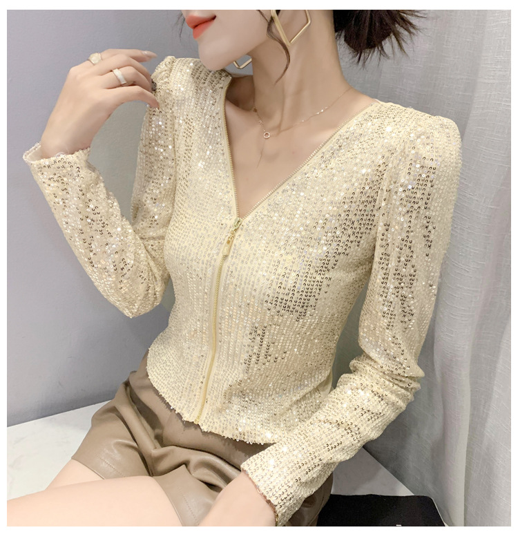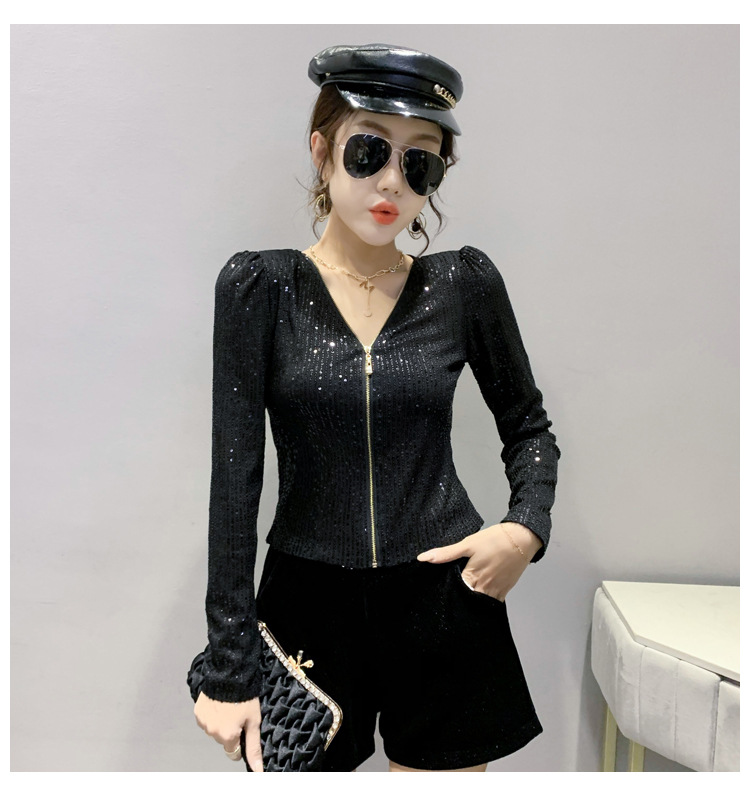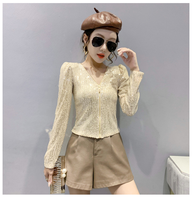 유럽 역 실제 촬영 2023 가을과 겨울 클래식 스팽글 긴소매 지퍼 카디건 여성 탑 스팽글 코트 원피스 배달스토어 가기