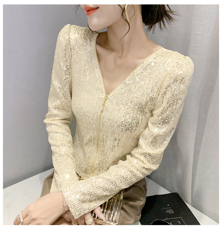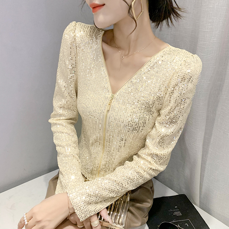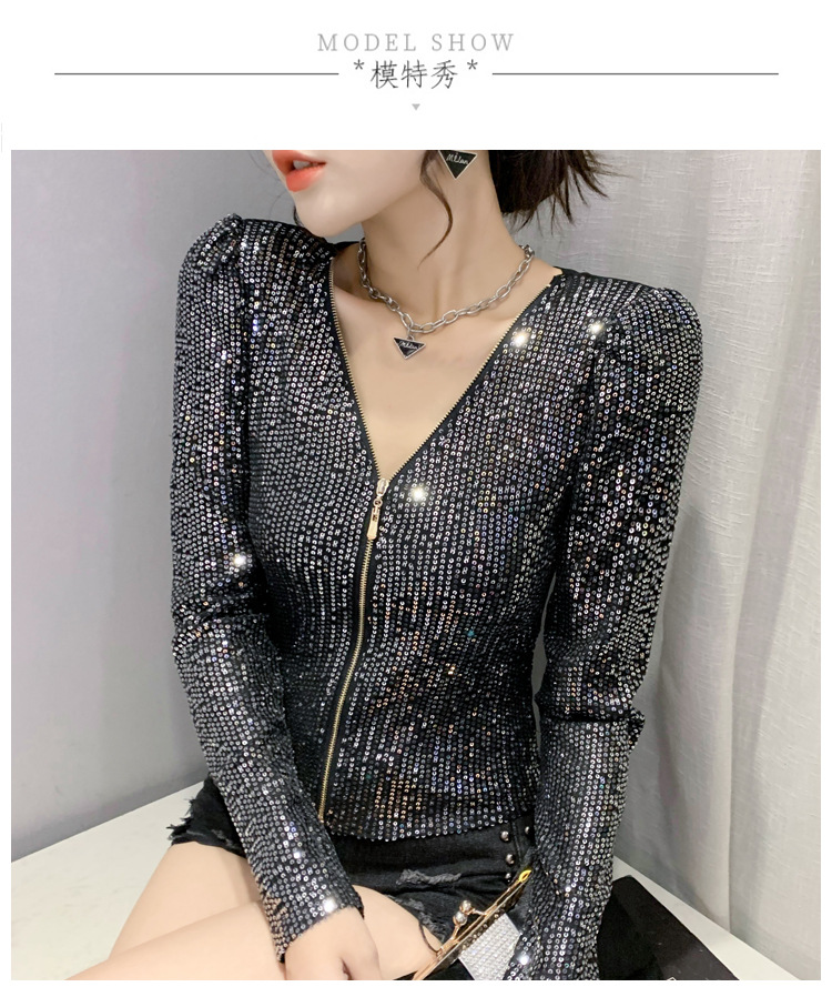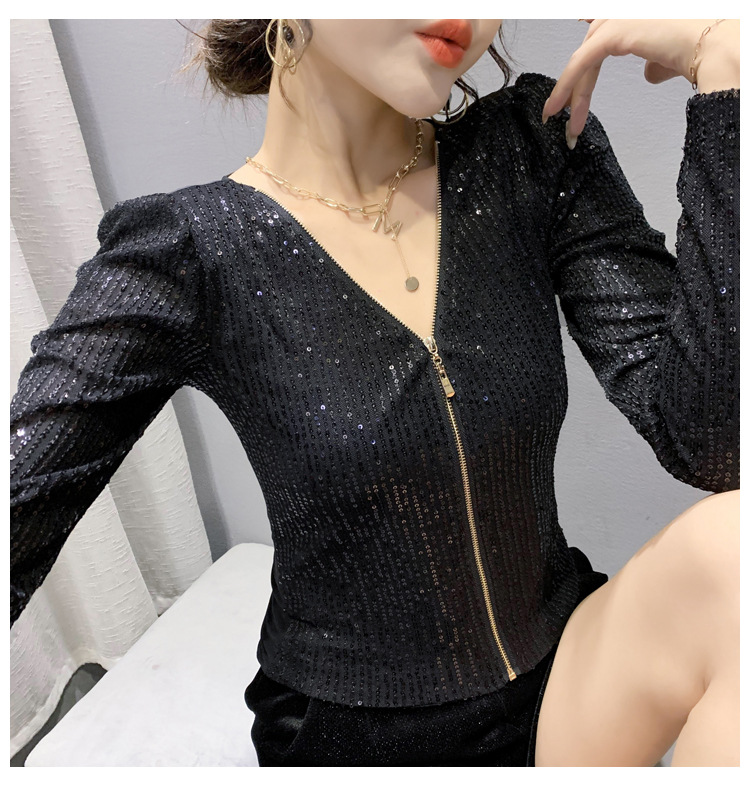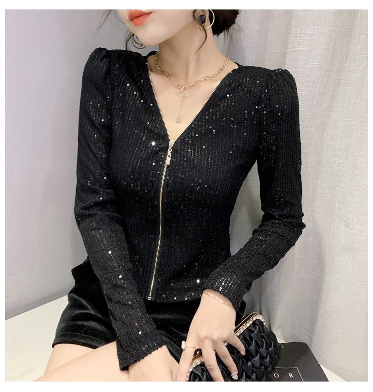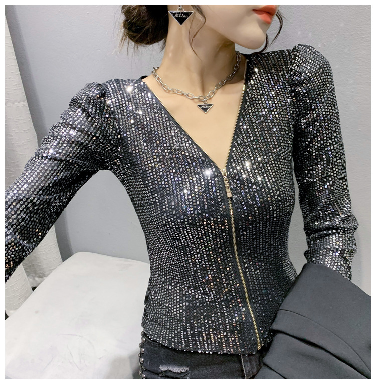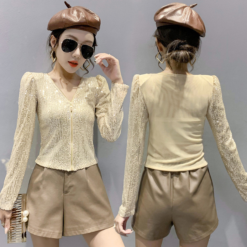 유럽 역 실제 촬영 2023 가을과 겨울 클래식 스팽글 긴소매 지퍼 카디건 여성 탑 스팽글 코트 원피스 배달스토어 가기