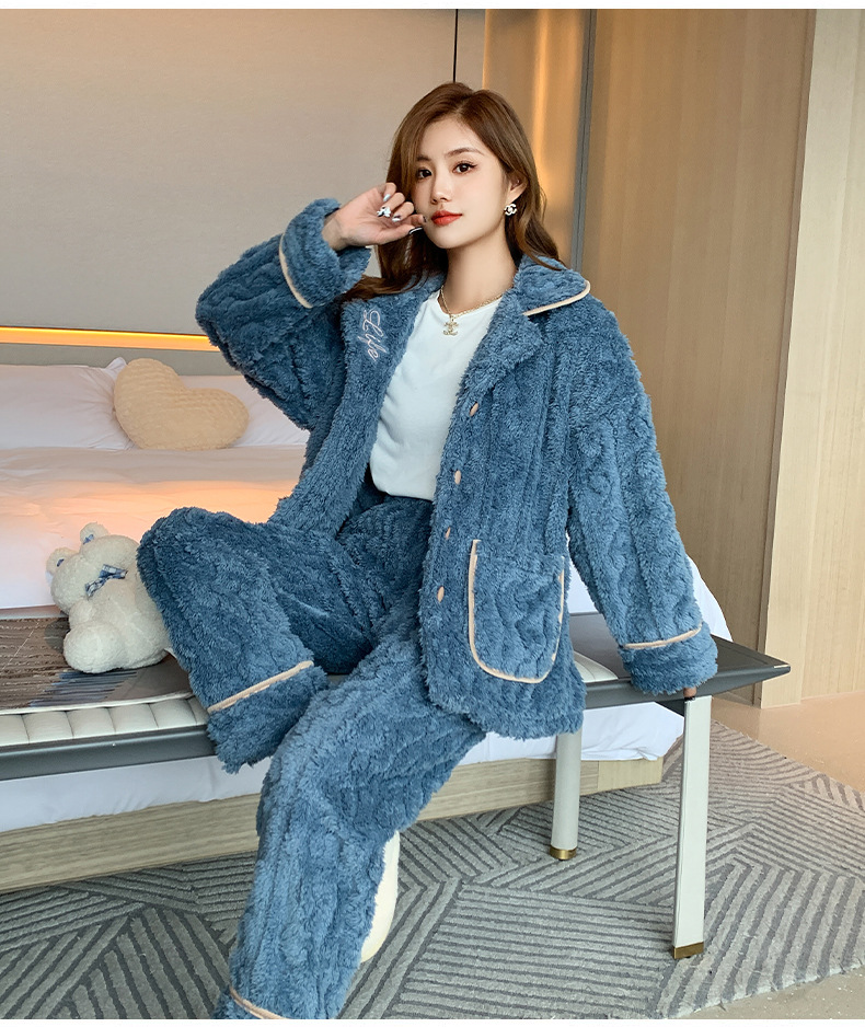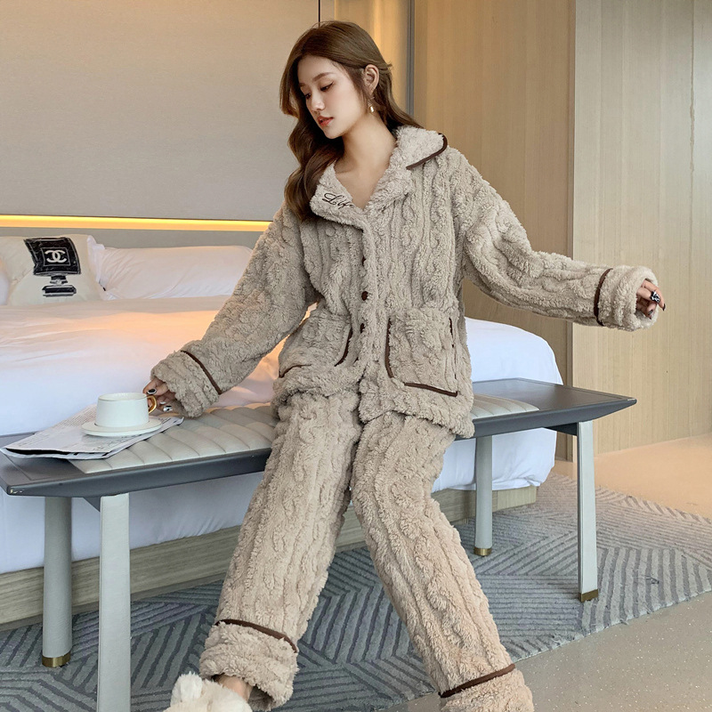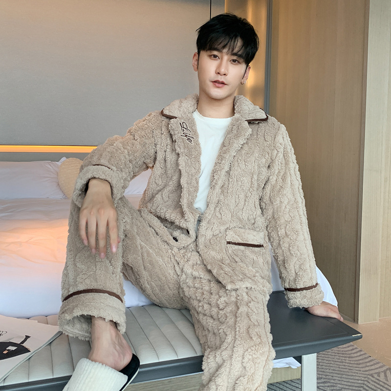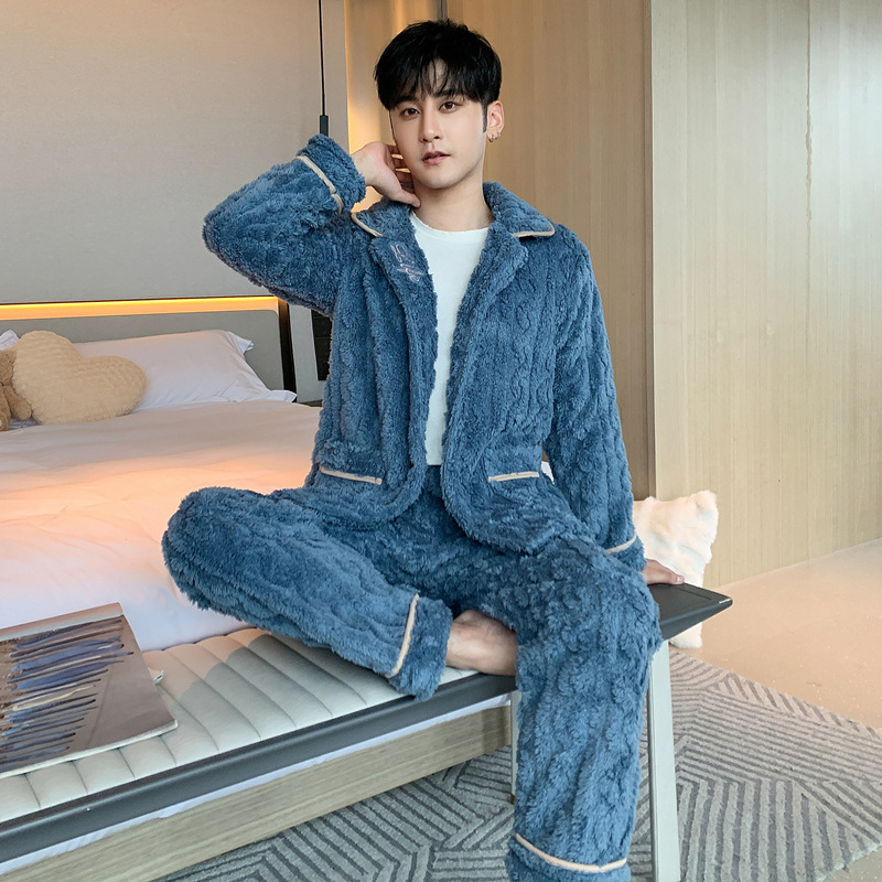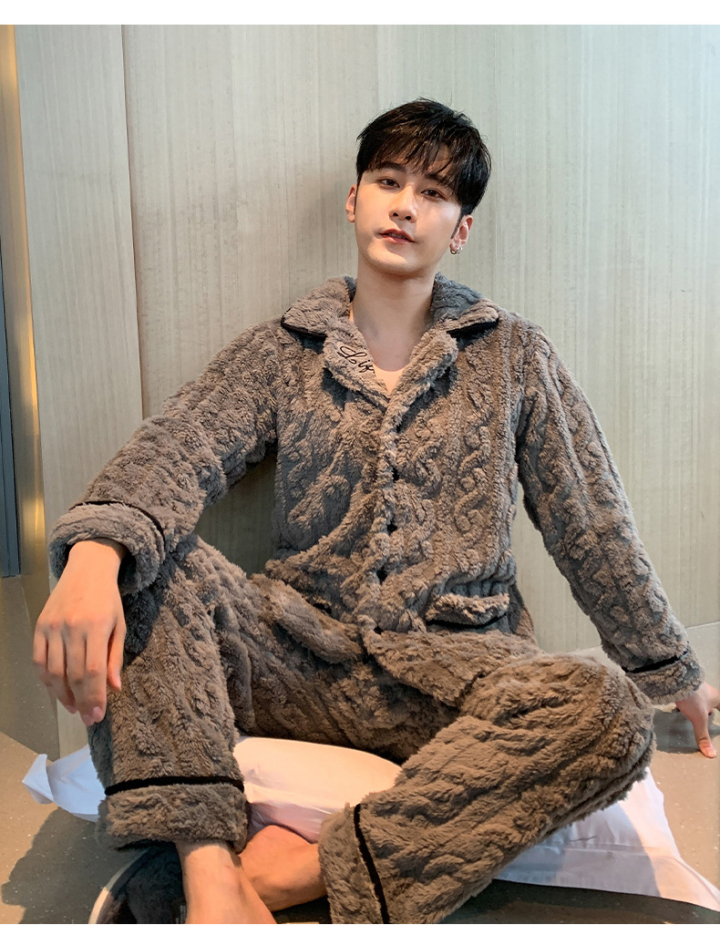 커플의 산호 양털 잠옷 여자의 가을과 겨울 플란넬 두꺼운 기모 캐주얼 따뜻한 겉옷을 입고 가정 옷 세트
