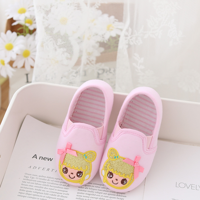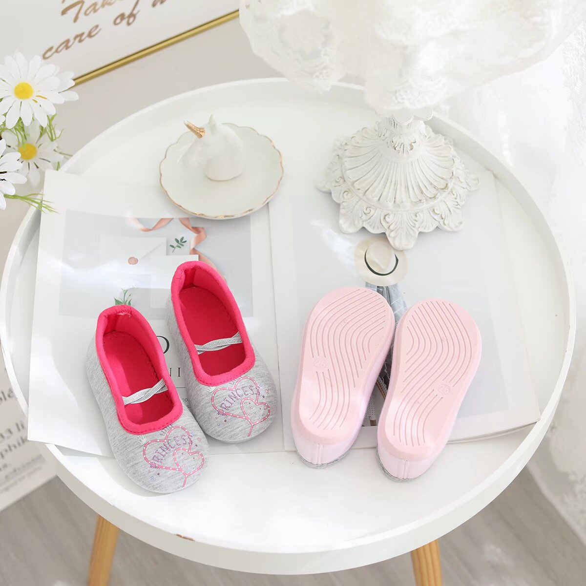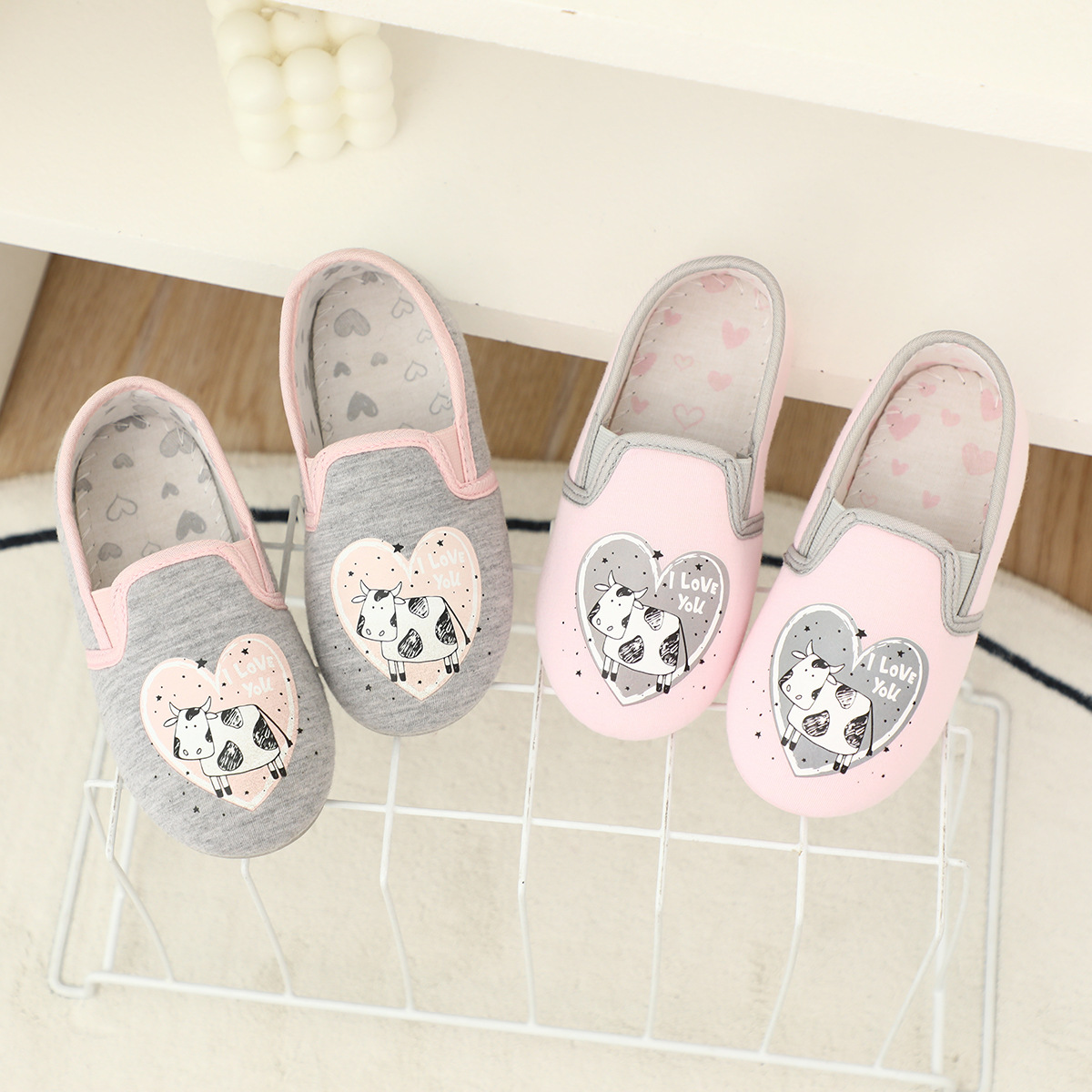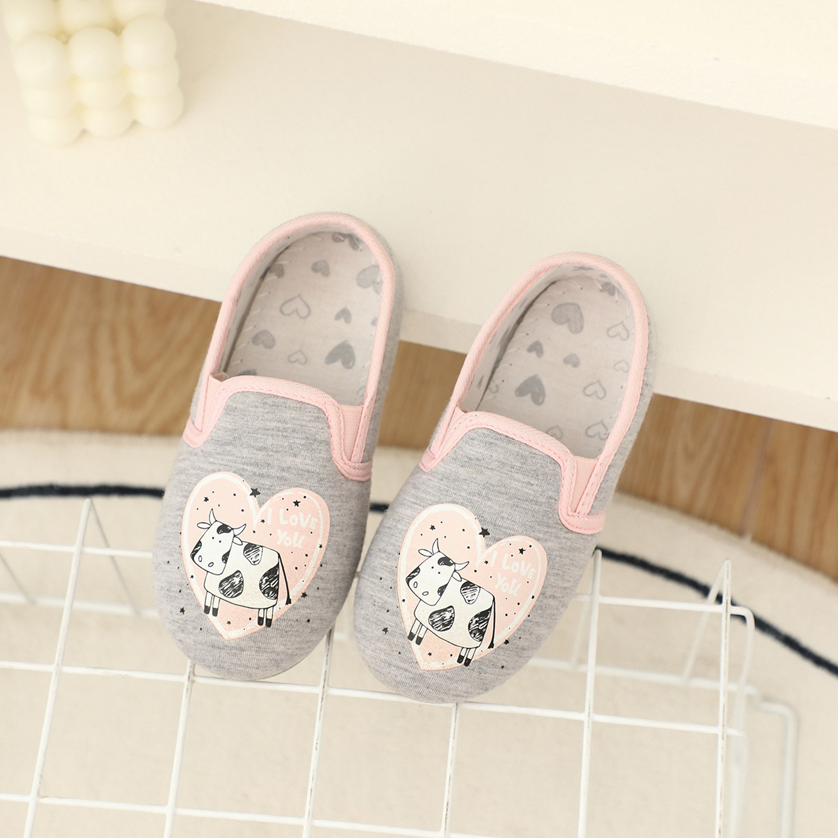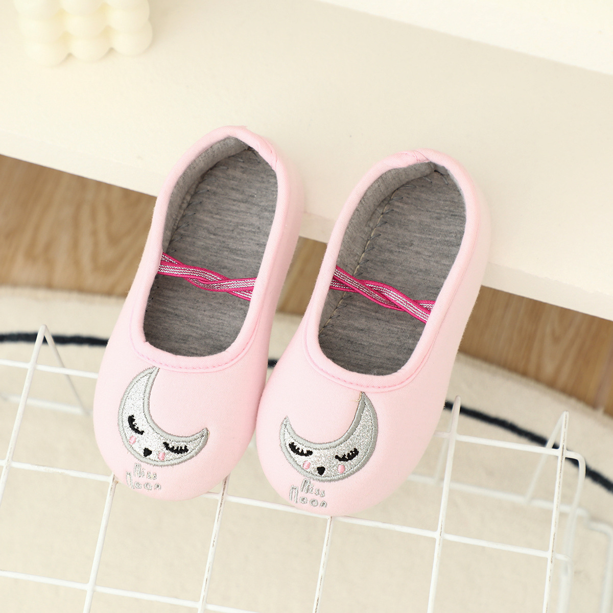봄과 가을 코튼 스트라이프 편안한 만화 어린 소녀 실내 신발 홈 바닥 슬리퍼 어린이 소녀 가방 뒤꿈치 슬리퍼스토어 가기