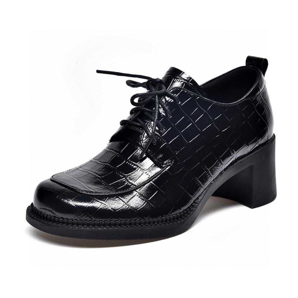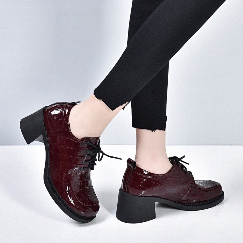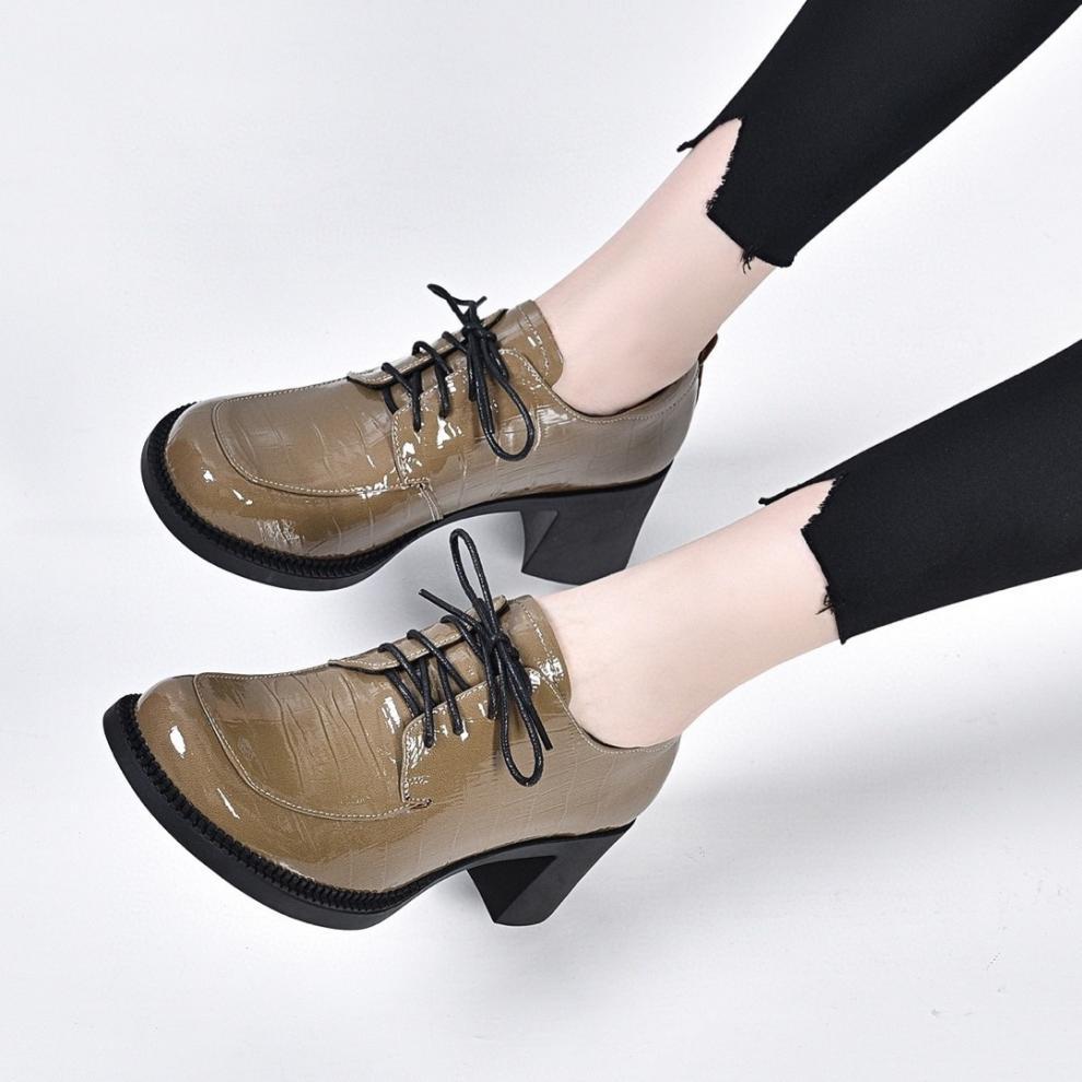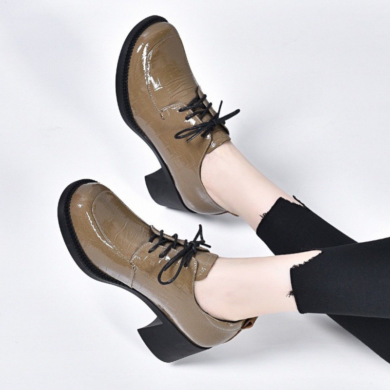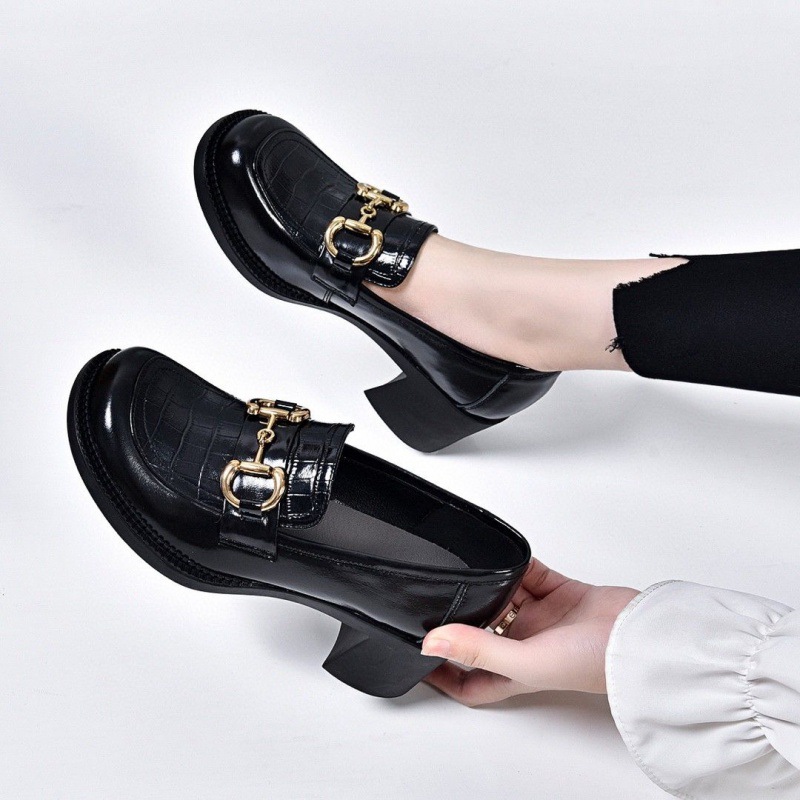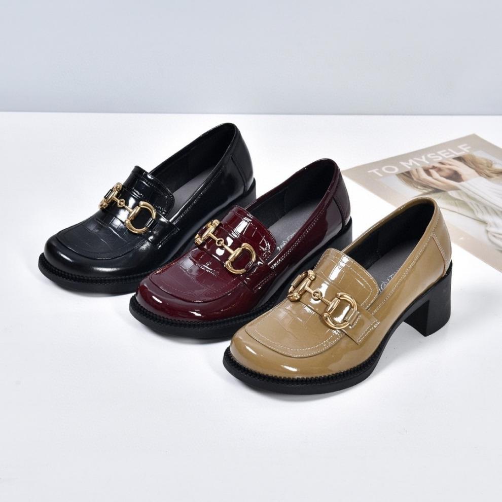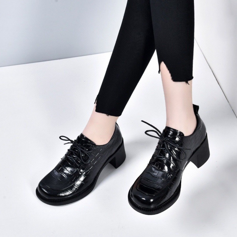 영국 스타일 큰 머리 작은 가죽 신발 여성용 두꺼운 굽 가죽 단층 신발 2023 봄과 가을 여성용 새로운 에나멜 가죽 슬립온 로퍼