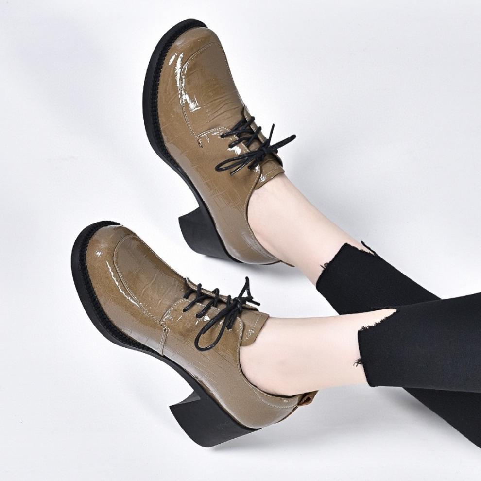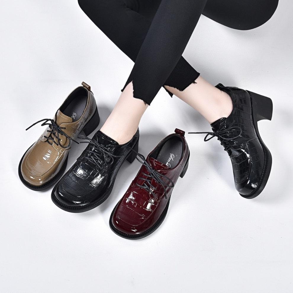 영국 스타일 큰 머리 작은 가죽 신발 여성용 두꺼운 굽 가죽 단층 신발 2023 봄과 가을 여성용 새로운 에나멜 가죽 슬립온 로퍼스토어 가기