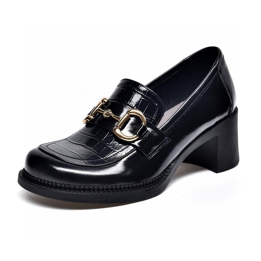 英伦风大头小皮鞋女粗跟真皮单鞋2021春秋新款漆皮一脚蹬乐福鞋女