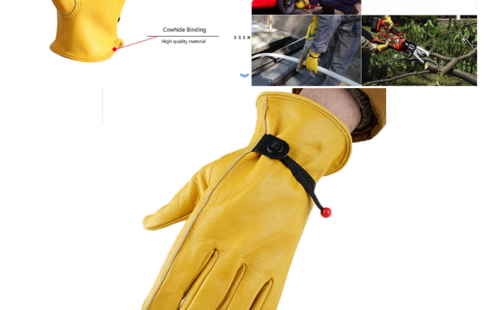 탑 레이어 소가죽 원예 작업 내마모성 미끄럼 방지 소프트 보호 라이딩 야외 하이킹 오토바이 장갑 노랑스토어 가기