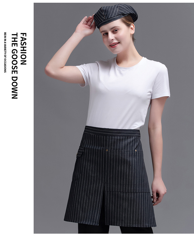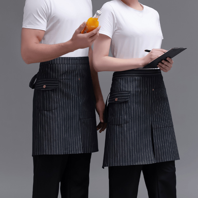 • XHHS 반 분할 포켓 앞치마 흑백 줄무늬