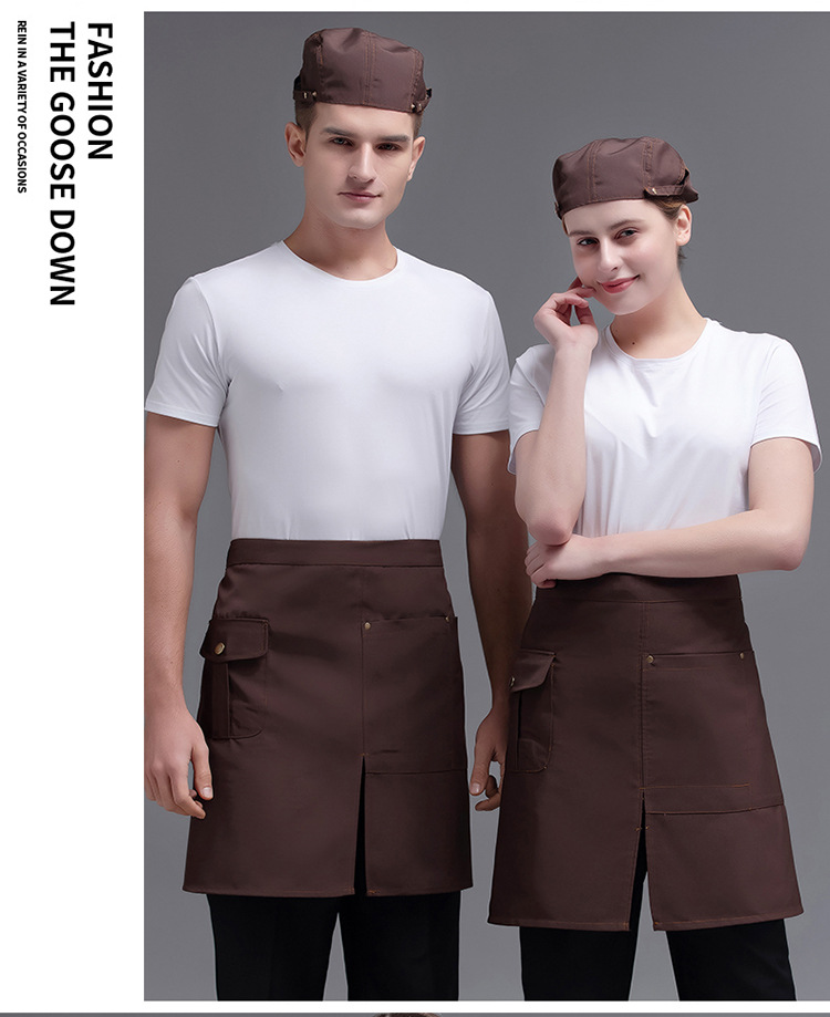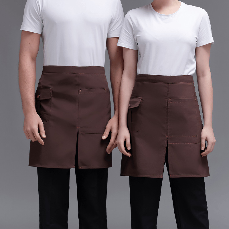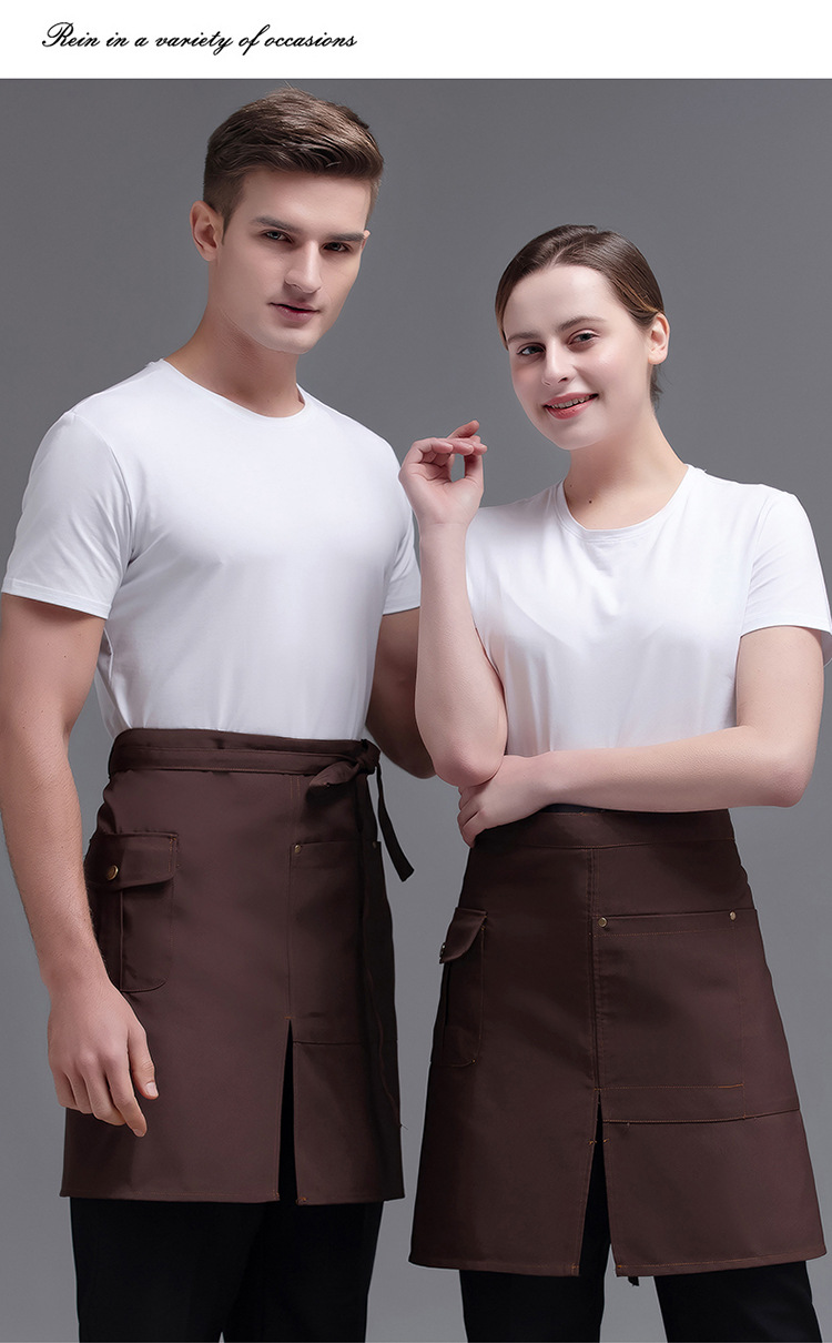 • XHHS 반 분할 포켓 앞치마 다크 브라운