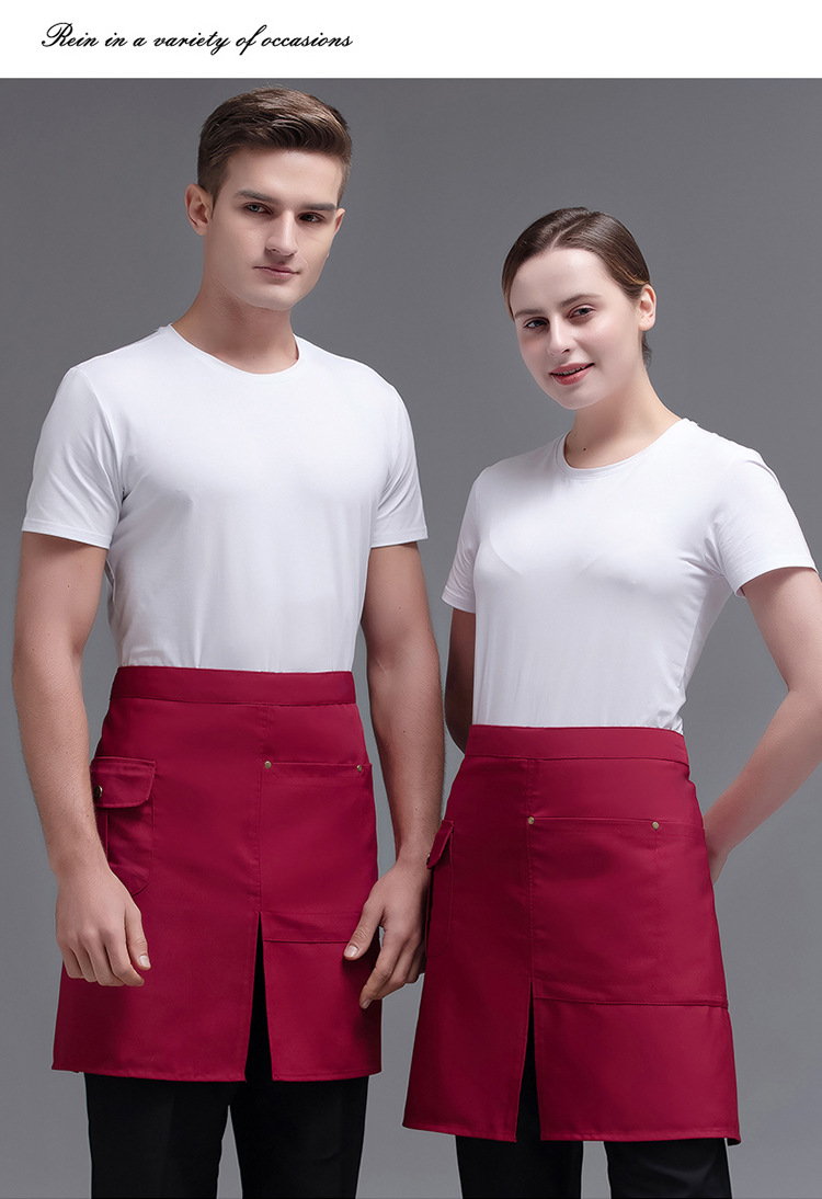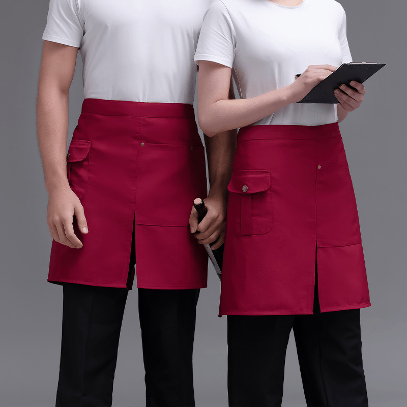 • XHHS 반 분할 포켓 앞치마 레드