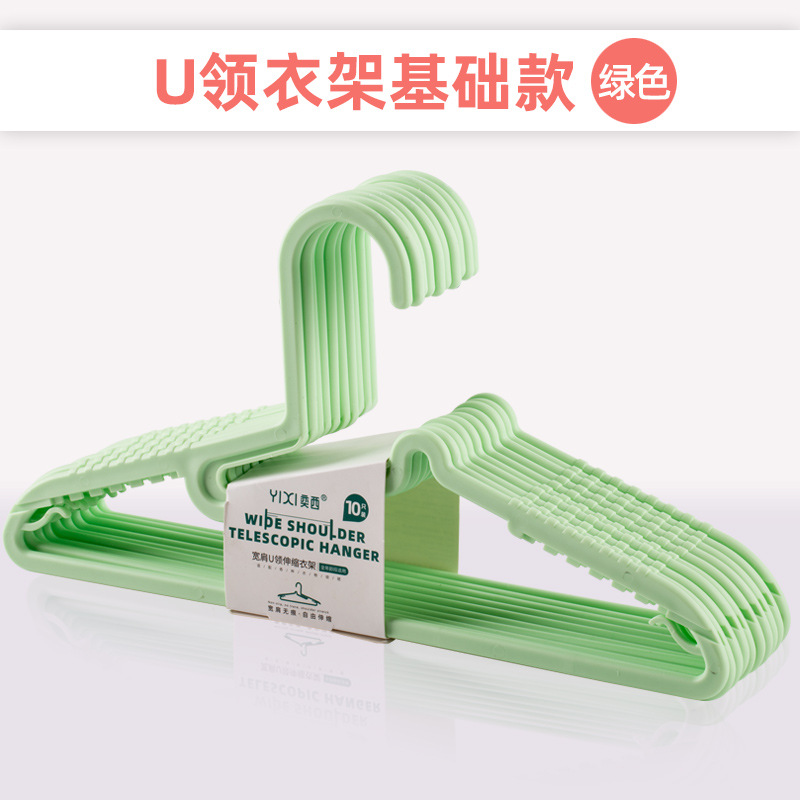 • U 칼라 옷걸이 텔레스코픽 와이드 숄더 [본체 그린 + 숄더 화이트]]