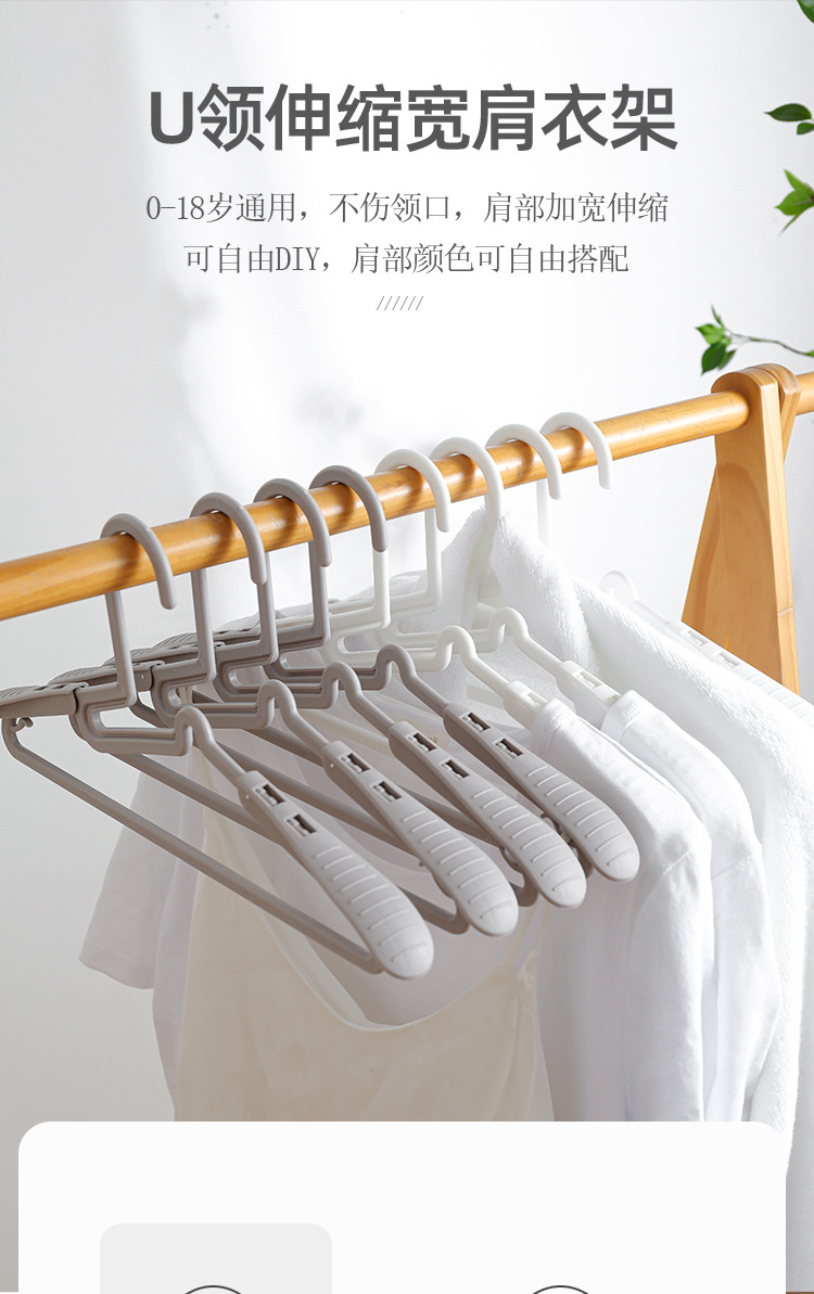 원활한 넓은 어깨 옷 걸이 도매 텔레스코픽 옷 랙 스토리지 홈 어린이 옷 지원 미끄럼 방지 대담한 플라스틱 옷 걸이스토어 가기