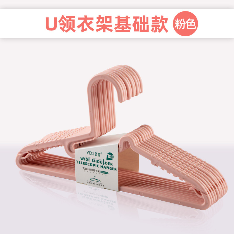 • U 칼라 옷걸이 텔레스코픽 와이드 숄더 [본체 핑크 + 숄더 화이트]]