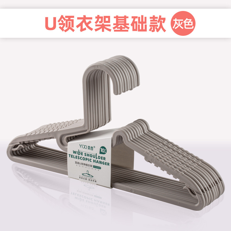 • U 칼라 옷걸이 텔레스코픽 와이드 숄더 [본체 그레이 + 숄더 화이트]]