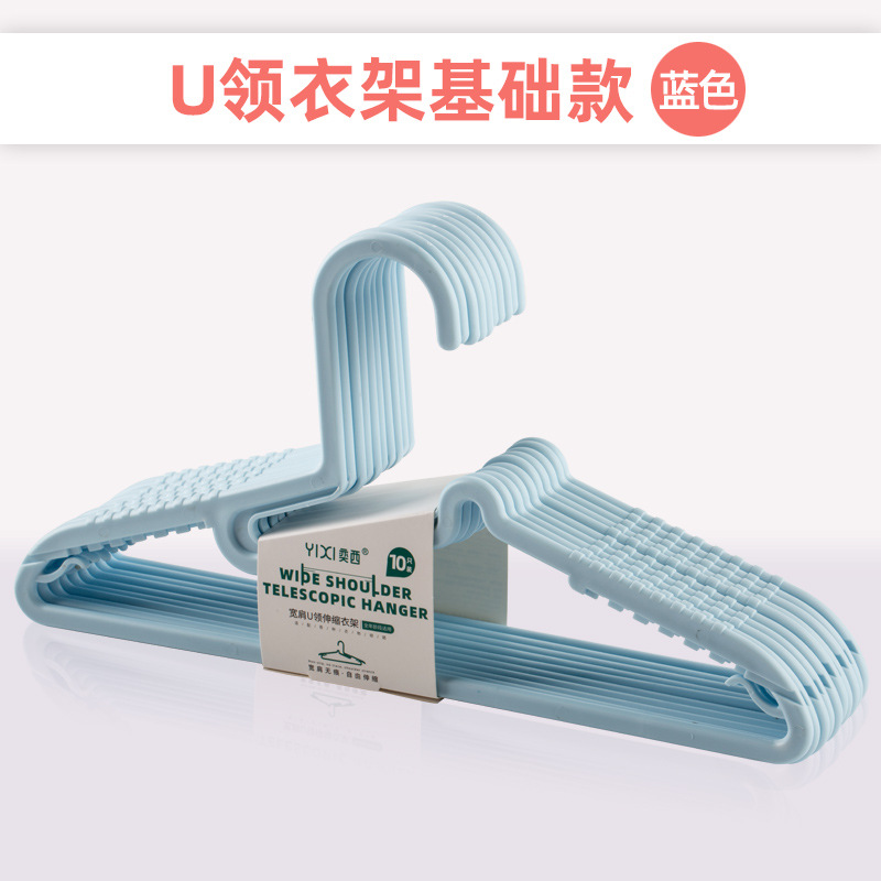• U 칼라 옷걸이 텔레스코픽 와이드 숄더 [본체 블루 + 숄더 화이트]]