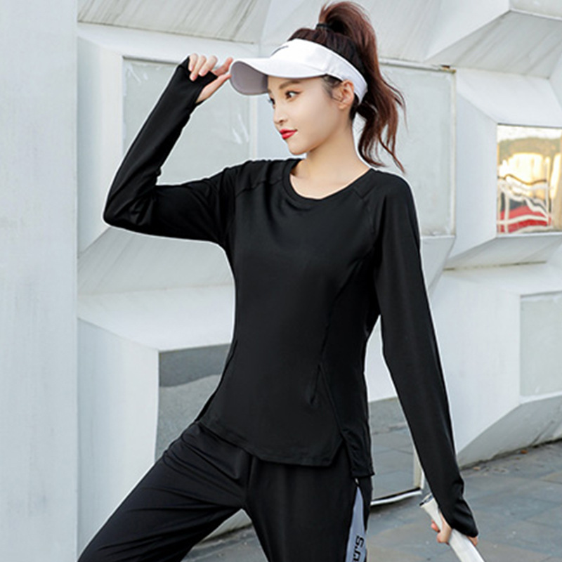 요가 옷의 세대 여성의 봄과 가을 느슨한 플러스 사이즈 피트니스 스포츠 탑 실행 속건 스트레치 티셔츠 200kg스토어 가기