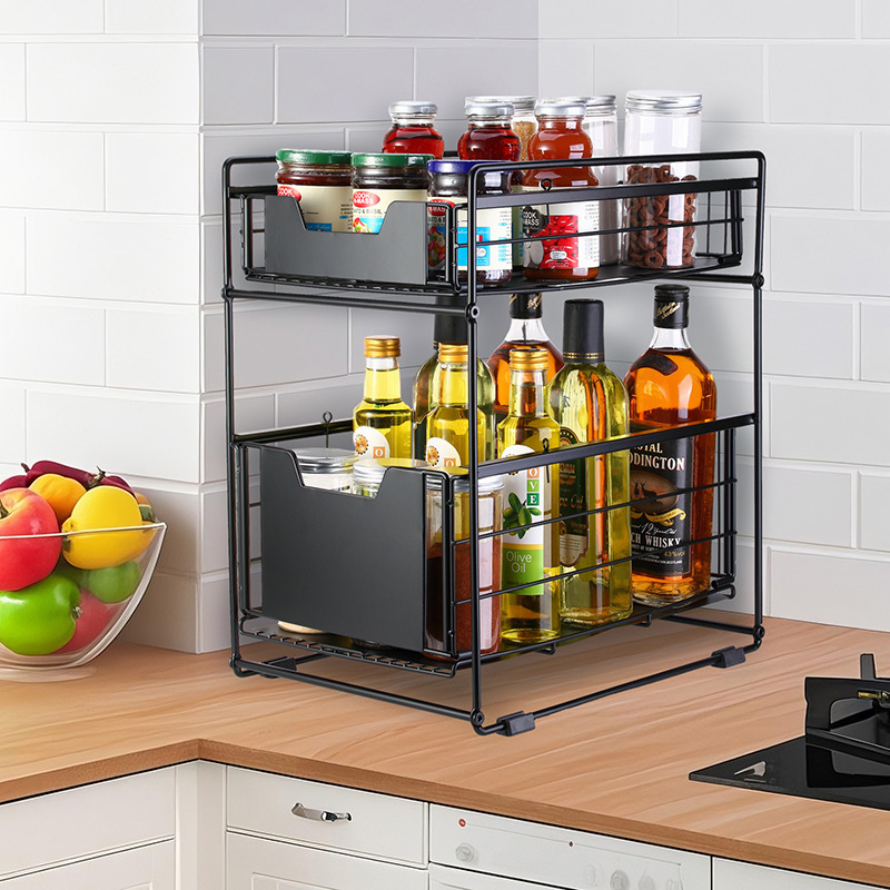 주방 분리형 블랙 싱크대 수납 선반, 다층 조미료 병 및 용품 보관 선반, 주방용품스토어 가기
