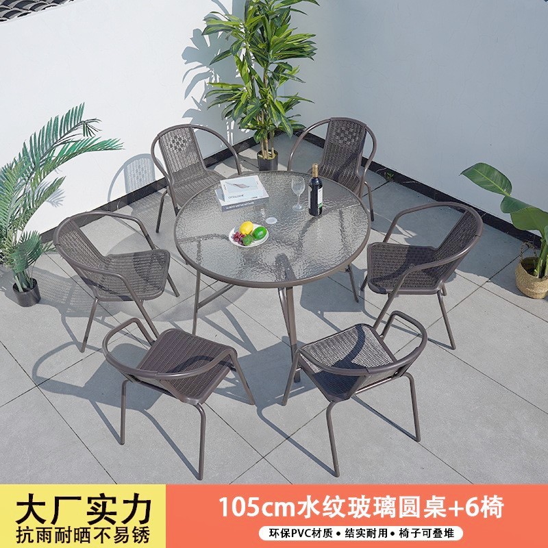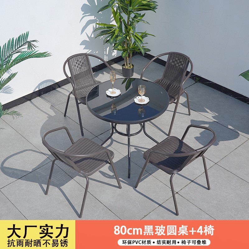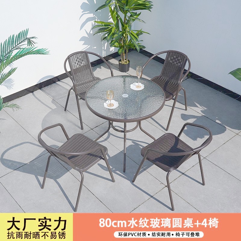 야외 야외 우산 야외 테이블과 의자 조합 안뜰 금속 레저 정원 등나무 같은 의자 테라스 테이블과 의자 3 종 세트스토어 가기