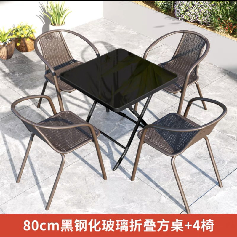 • 의자 4 개 + 80 사이즈 접이식 블랙 스퀘어 테이블