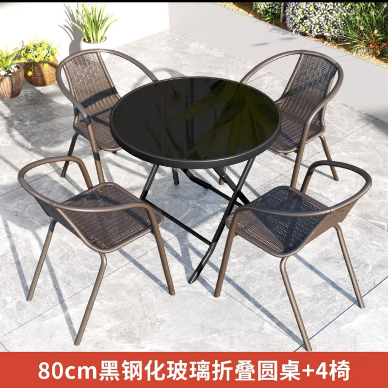 • 의자 4 개 + 60 사이즈 티타늄 스틸 원형 테이블