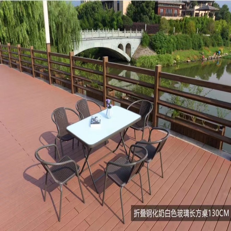 • 의자 6 개 + 130 사이즈 접이식 흰색 유리 직사각형 테이블