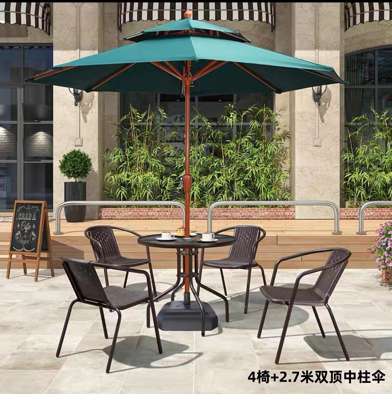 야외 야외 우산 야외 테이블과 의자 조합 안뜰 금속 레저 정원 등나무 같은 의자 테라스 테이블과 의자 3 종 세트