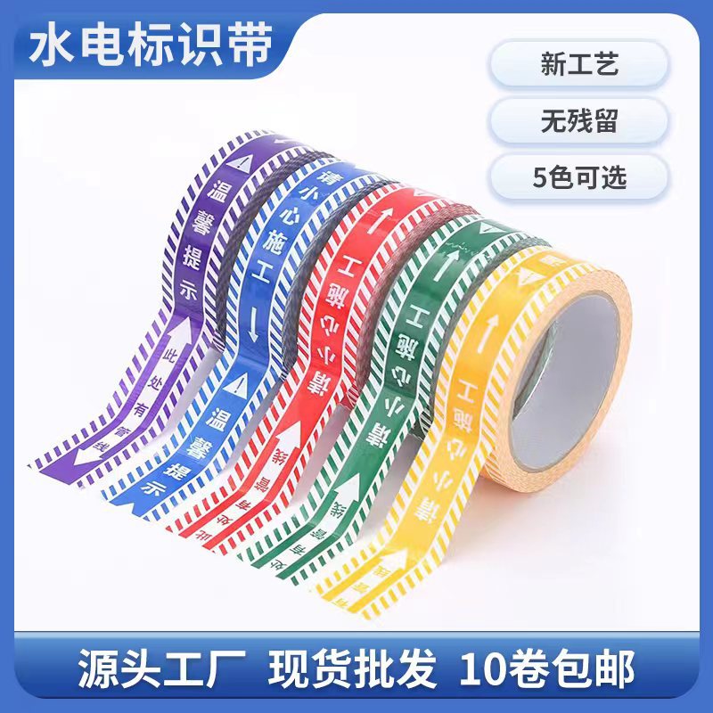 맞춤형 농축 물 및 전기 식별 벨트 현장 건설 슬로건 경고 벨트 창 스티커 물 및 전기 파이프 라인 방향 식별 테이프