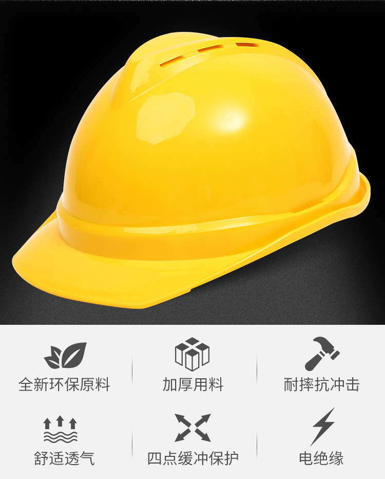 安全帽 工地国标abs加厚防砸建筑施工防护头盔劳保安全帽透气印字