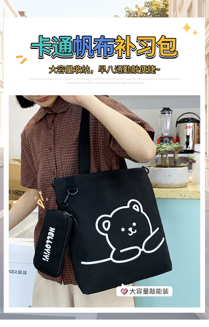 학생 가방 만화 어린이 캔버스 가방 과외 초등학생 캔버스 가방 크로스 바디 학교 가방 휴대용 어깨 가방 도매