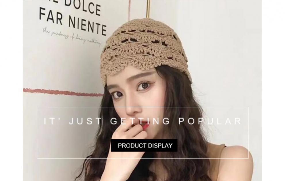 모자 여성의 봄과 가을 모든 경기 한국 스타일 트렌디 레이스 중공 크로 셰 뜨개질 니트 TikTok 같은 스타일 멜론 스킨 니트 울 모자