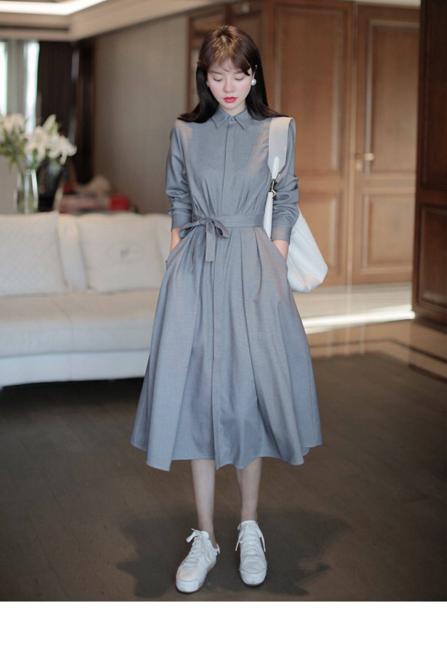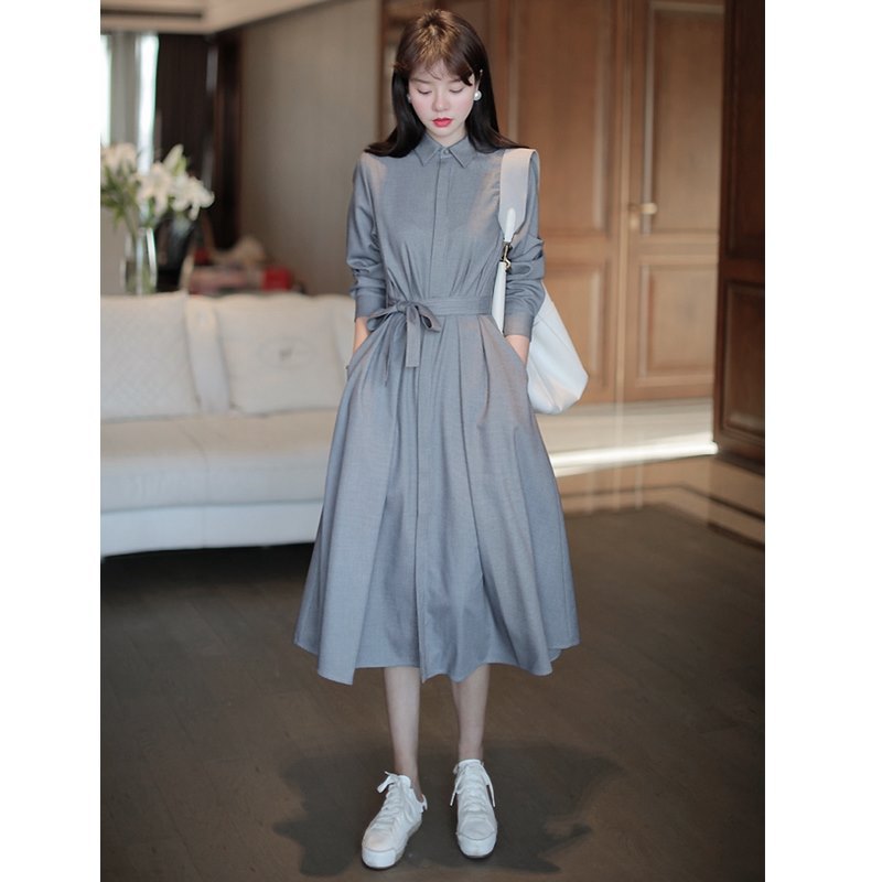 세트 베이스 원피스 중간 길이 나이 감소 우아한 봄과 가을 새로운 하이 퀄리티 전문 셔츠 원피스스토어 가기