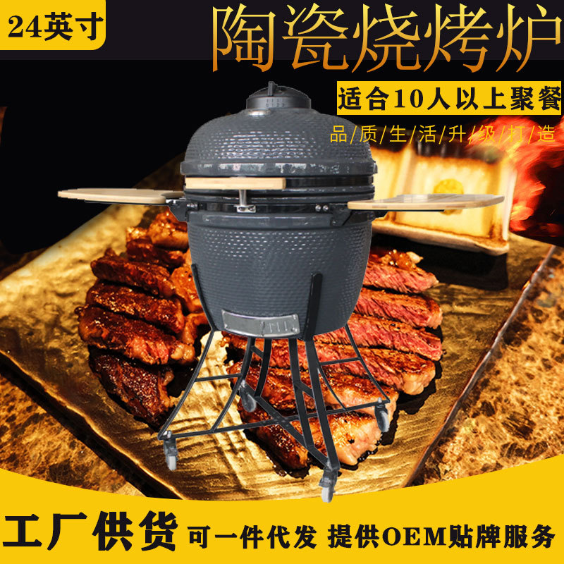 세라믹 바베큐 24 인치 두꺼운 야외 BBQ 다기능 애플 숯 바베큐 랙 빅 그린 계란 흡연 스토브