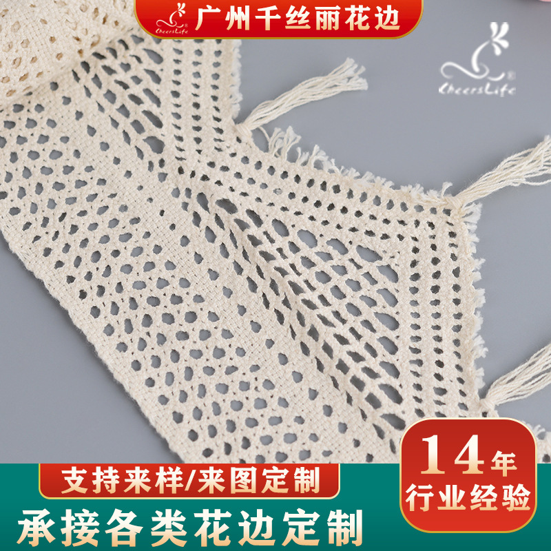 맞춤형 레이스 테이블 플래그, 의류, 커튼, 식탁보, 자수 레이스 액세서리, 물결 모양의 중공 흰색 면 레이스