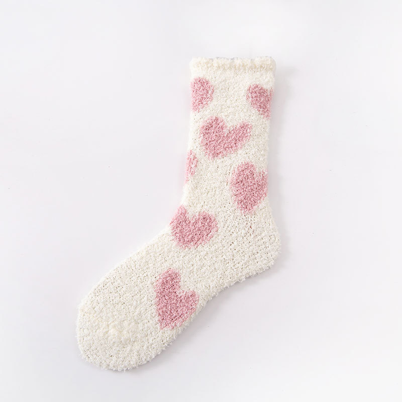 사랑 산호 양털 여자 양말 겨울 두꺼운 수면 양말 새로운 바닥 양말스토어 가기