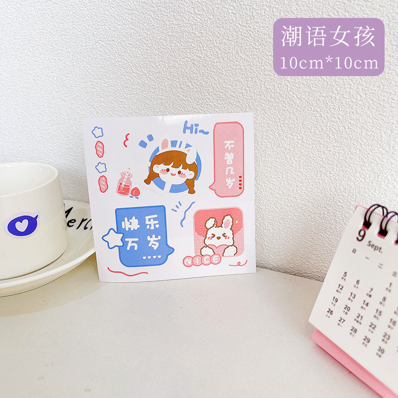 만화 귀여운 물 컵 스티커 휴대 전화 스티커 귀여운 소녀 하트 스타일 방수 PET 핸드북 스티커 컵 스티커스토어 가기