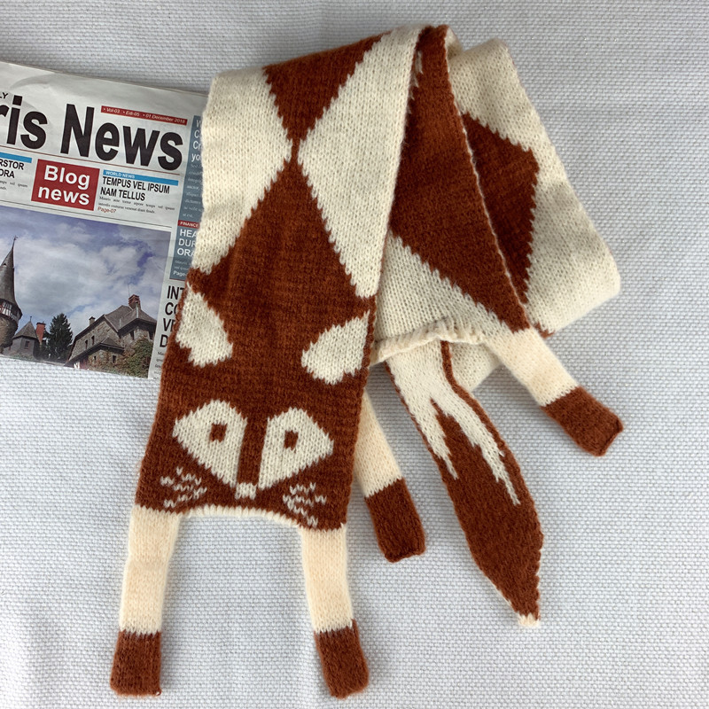 가을과 겨울 새로운 동해 선생님 한국과 일본의 새로운 수제 양모 따뜻한 여우 스카프 만화 어린이 따뜻한스토어 가기