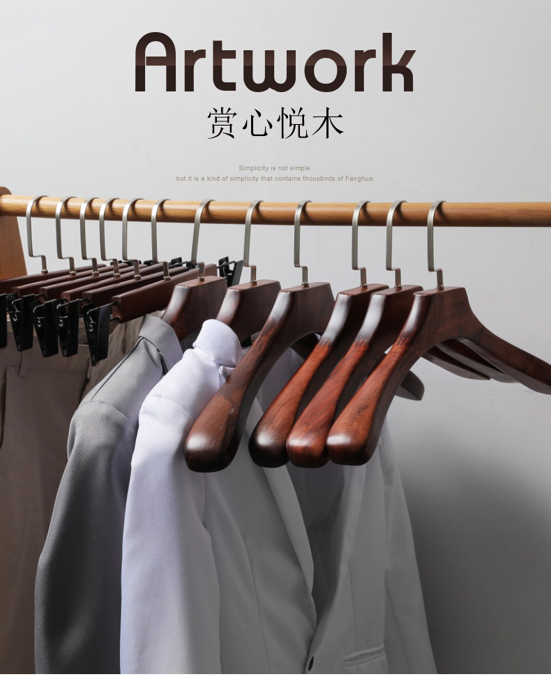 넓은 어깨 원활한 단단한 나무 옷걸이 가정용 옷 옷걸이 나무 옷걸이 옷걸이 의류 매장 호텔 세트 옷걸이스토어 가기