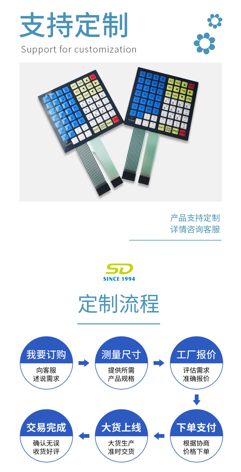 공장 공급 멤브레인 스위치 PVC 버튼 제어 표면 스티커 실크 스크린 터치 회로 스티커 LED 필름 패널스토어 가기
