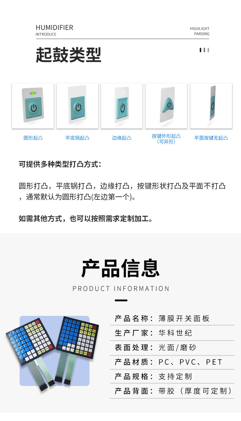 공장 공급 멤브레인 스위치 PVC 버튼 제어 표면 스티커 실크 스크린 터치 회로 스티커 LED 필름 패널