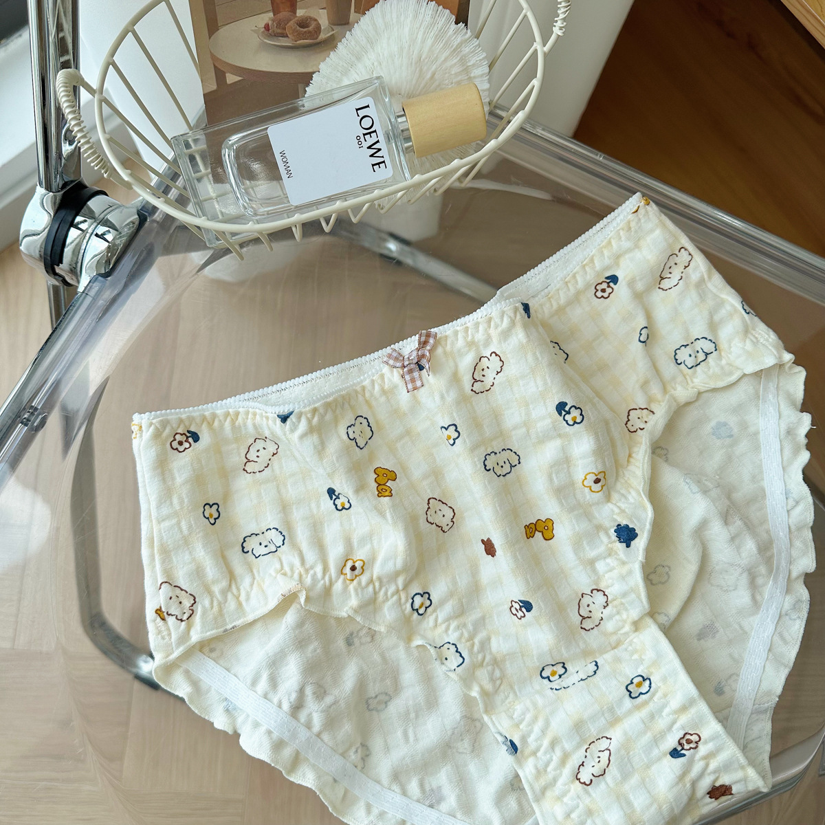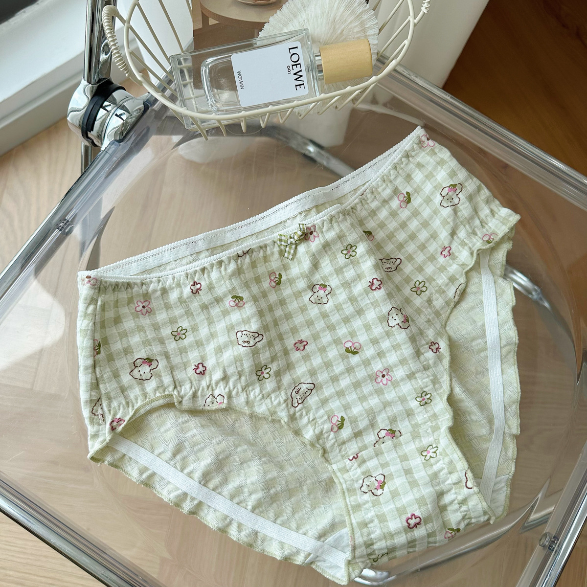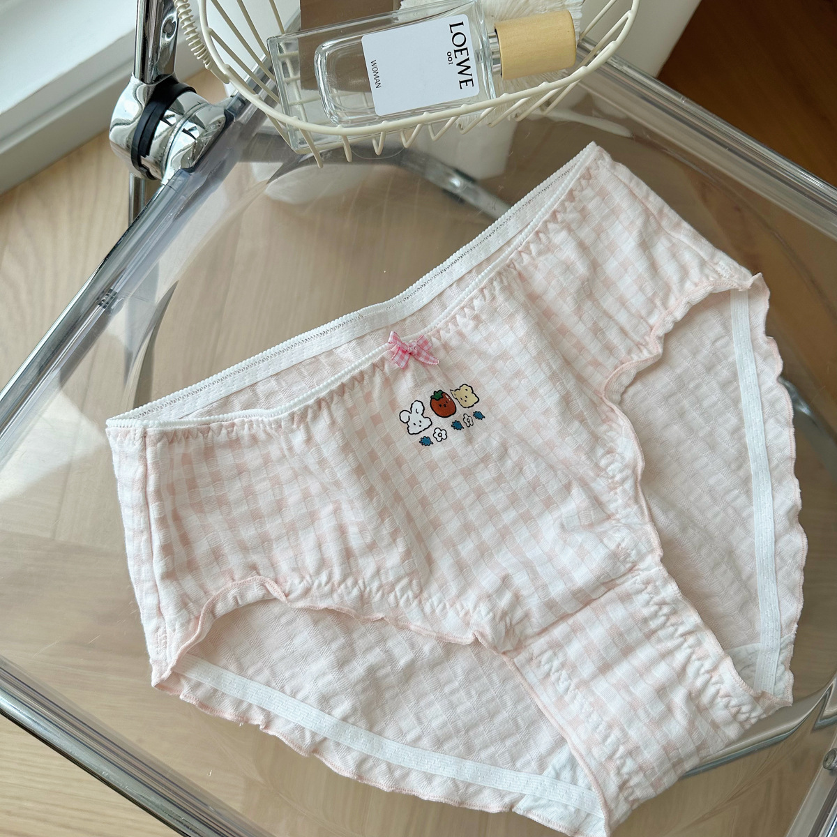 N8057 통통녀 버블 격자 무늬 귀여운 소녀의 팬티 면 중간 낮은 허리 일본 달콤한 여자의 팬티